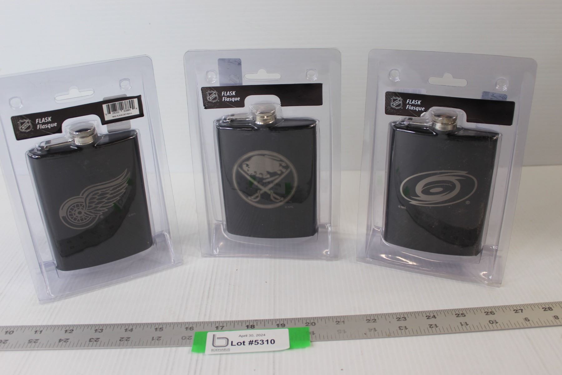 (3) NHL Flasks - Detroit, Buffalo, Carolina - New In Box
