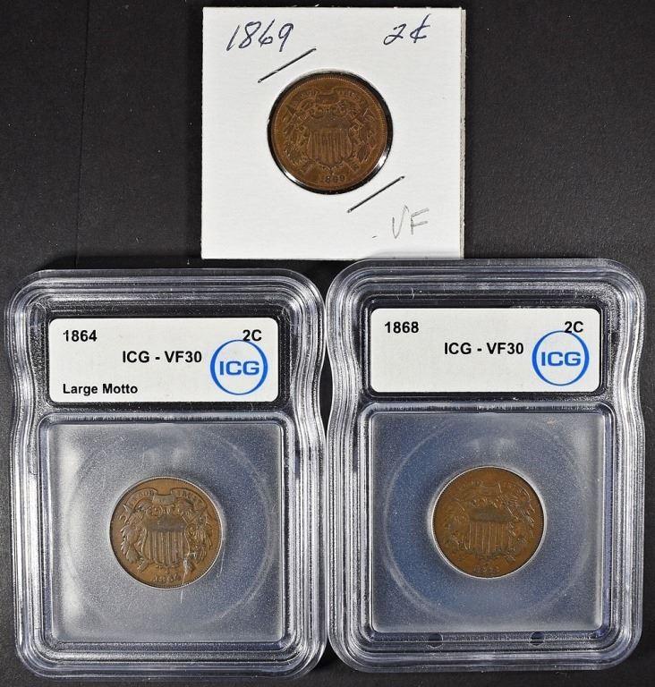 1864 LM, 1868, 1869 ALL VF30 ESTIMATE $120 - $150.