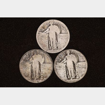 3-NO DATE SILVER STANDING LIBERTY QUARTERS