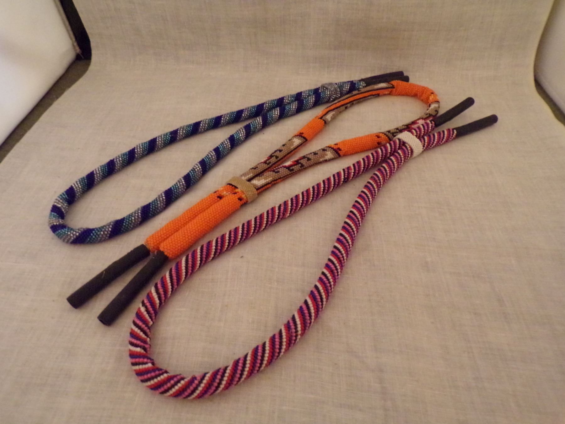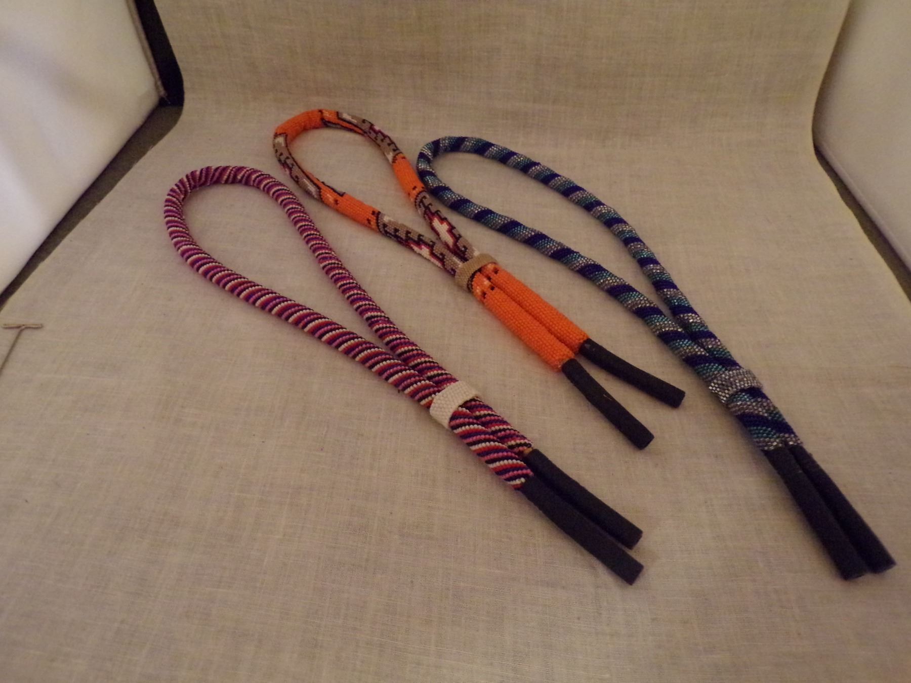 3 Native American Kiowa and Navajo Beaded Eyeglass Holders, measure 18'' to 22'' and are adjustable
