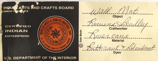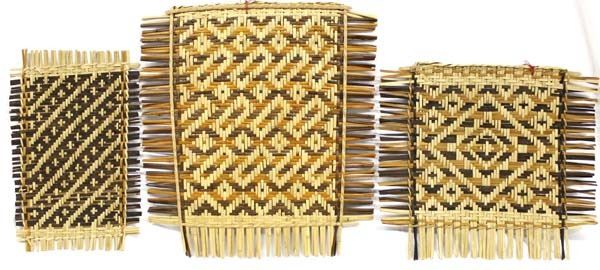 3 Vintage Native American Cherokee Woven Wall Mats by Rowena Bradley, made of River Cane and dyed with Butternut and Bloodroot, largest measures 18'' x 16'' and comes with original COA tag