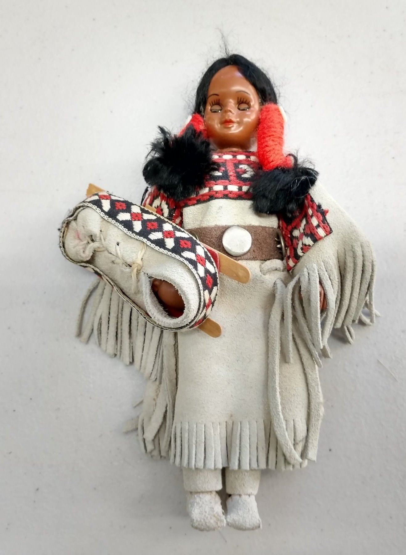 3 Native American Dolls, oldest approx. 1950s. Items are made of plastic, cloth, leather and glass with the largest doll measuring 12" x 4". Some older than others. Navajo dolls. Condition: Good, see images. Shipping $24.50 w/insurance and signature.