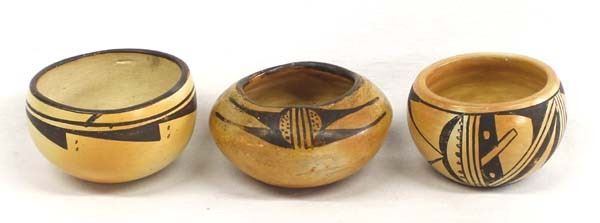 3 Native American Historic Hopi Pottery Bowls, largest measures 2'' x 4''