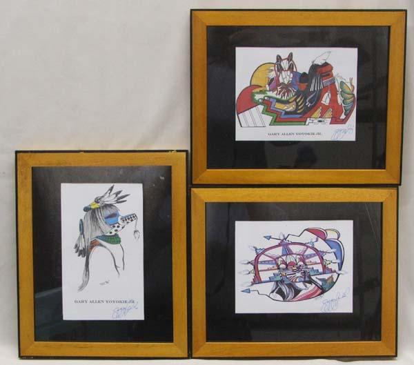 3 Framed & Matted Hopi Signed Hopi Prints by artist Gary Allen, visual measures 5x7''. Buyers Pay Actual Shipping and Handling Charges(see terms and conditions for more information)