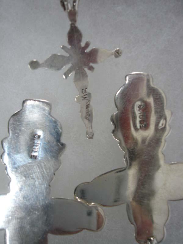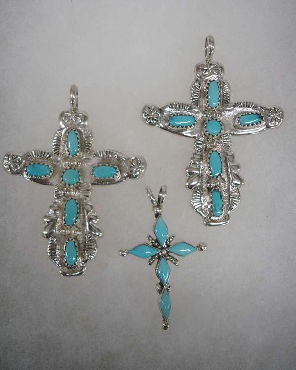 3 Native American Navajo Silver & Turquoise Hallmarked Crosses, 1 Stamped Sterling and Hallmarked SW, 2 Hallmarked C. IULE, Largest measures 2'' x 1.25''. Buyers Pay Actual Shipping and Handling Charges(see terms and conditions for more information).