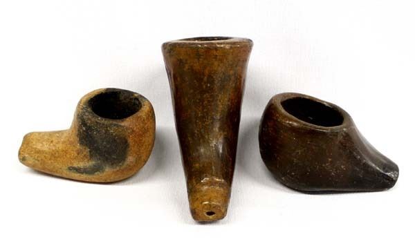 3 Native American Navajo Pottery Pipes, largest measures 3.5'' x 1.5'', nice thick walled pottery