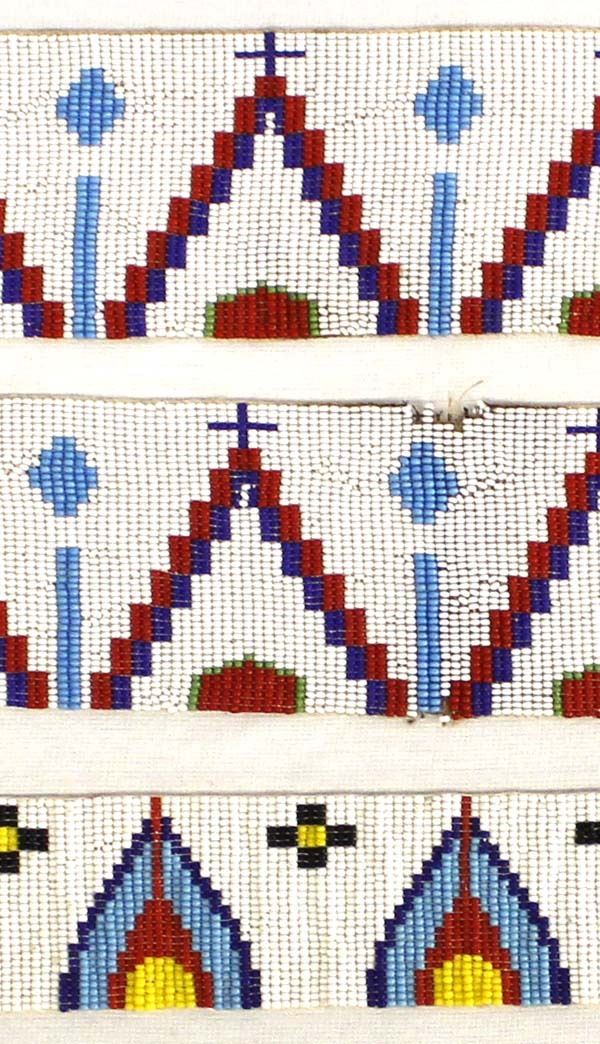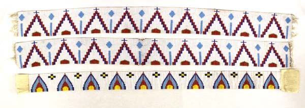 3 Native American Plains Indian Beaded Dance Panels, each measures 3''W x 30''