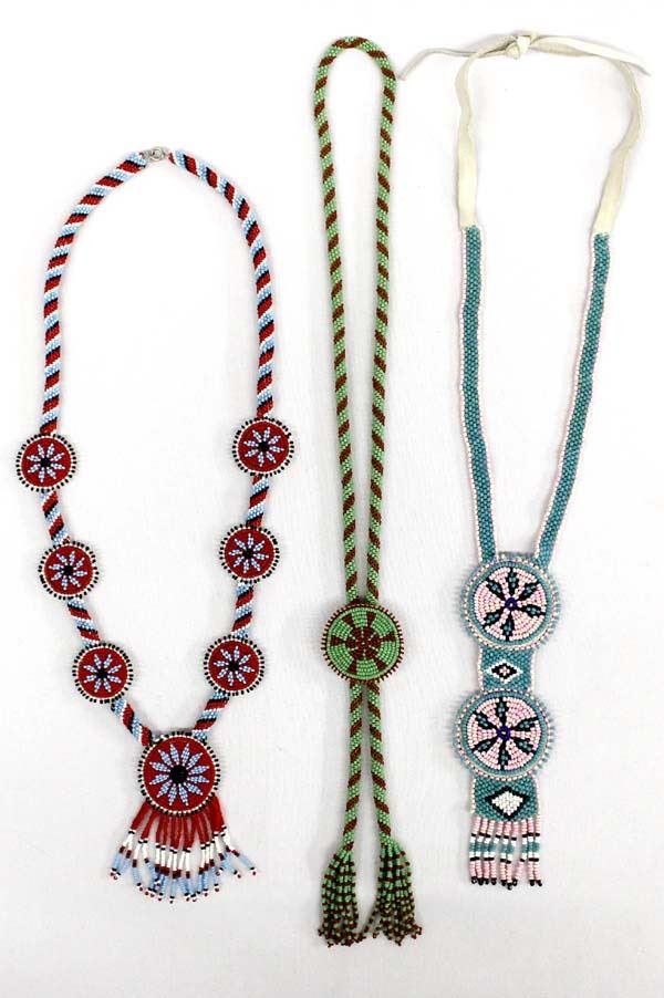 3 Native American Sioux Beaded Necklaces, largest measures 25''L end to end, beautiful vibrant colors