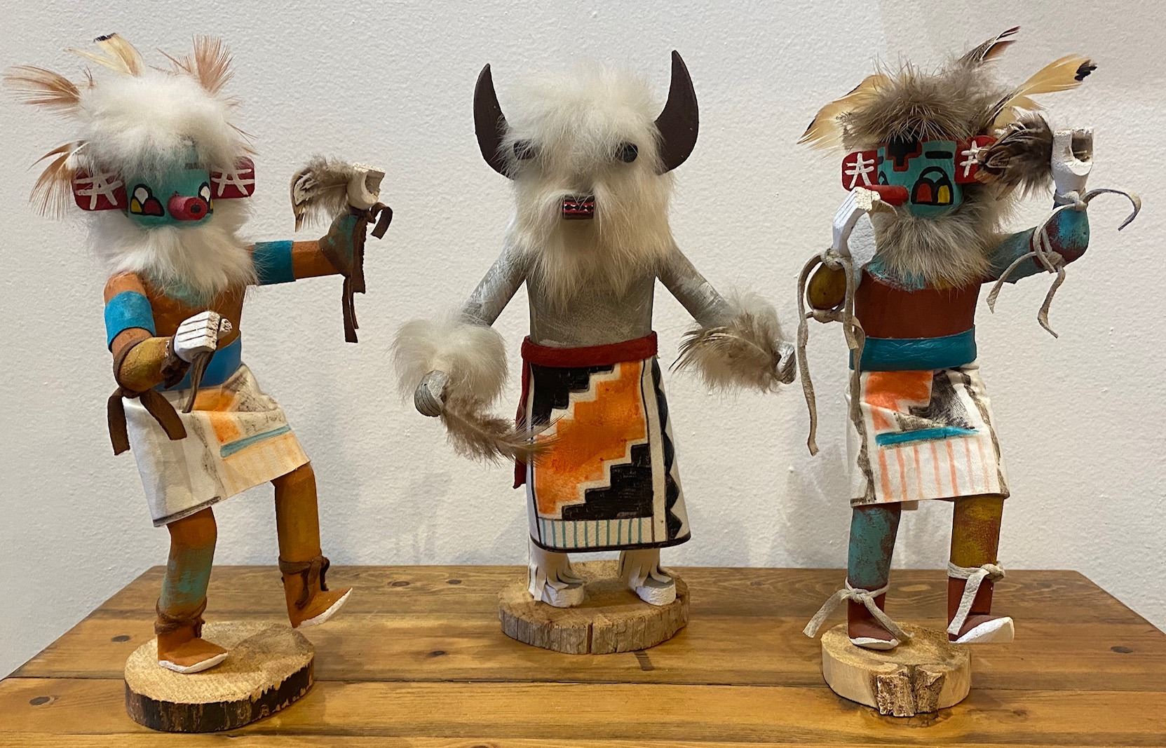 For your Collection 3-nice Navajo Kachina. All appx. 10-inches tall. All signed. Early Morning by M Larson, Buffalo signed RY and Mesa Morning signed Largo