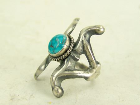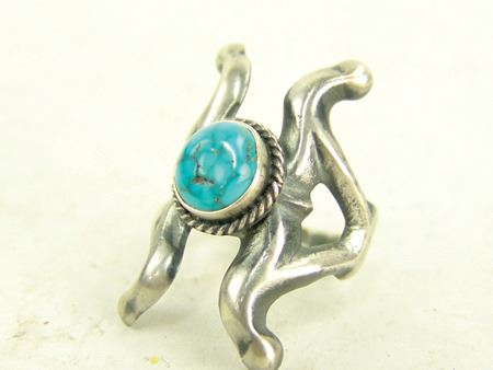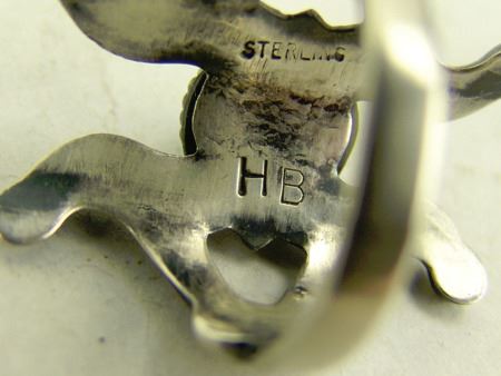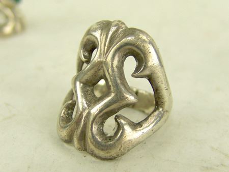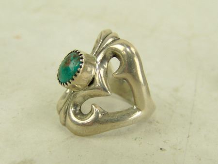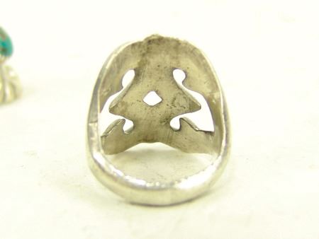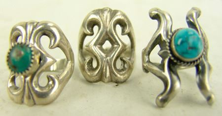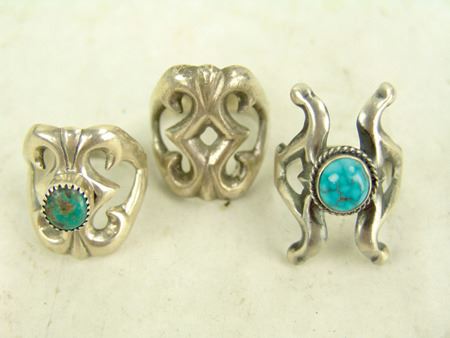 Ca. 1970s-1980s, Collection of three sand cast all-silver rings done in similar style, two with turquoise stones, one marked "HB." Very good condition. Sizes 10-1/4, 10-1/2, 10-3/4