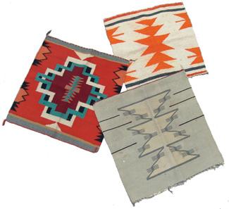 One Germantown sampler with good color and in excellent condition plus two other Navajo shelf rugs. Largest 20" x 21"
