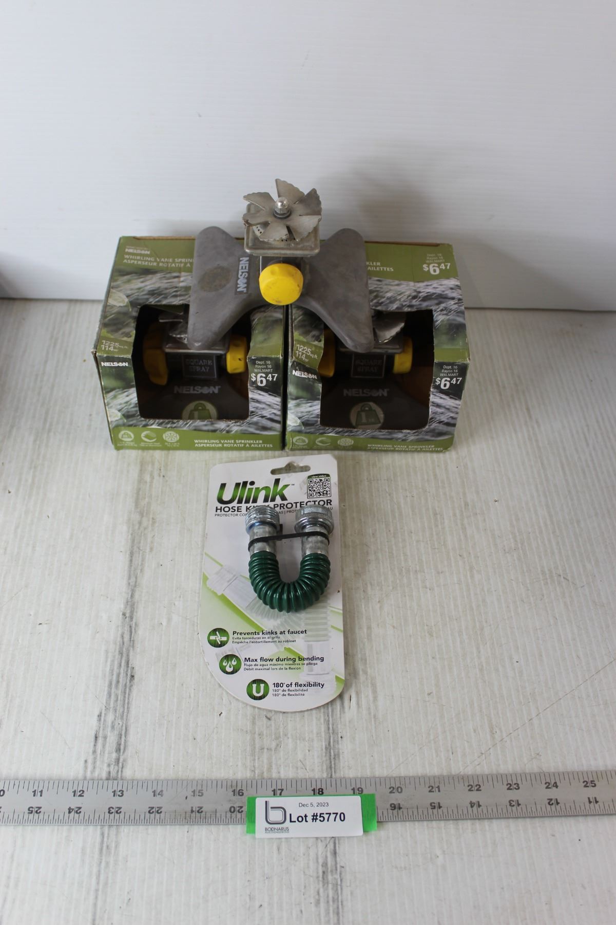 (3) Nelson Sprinklers, (1) Hose Kink Protector