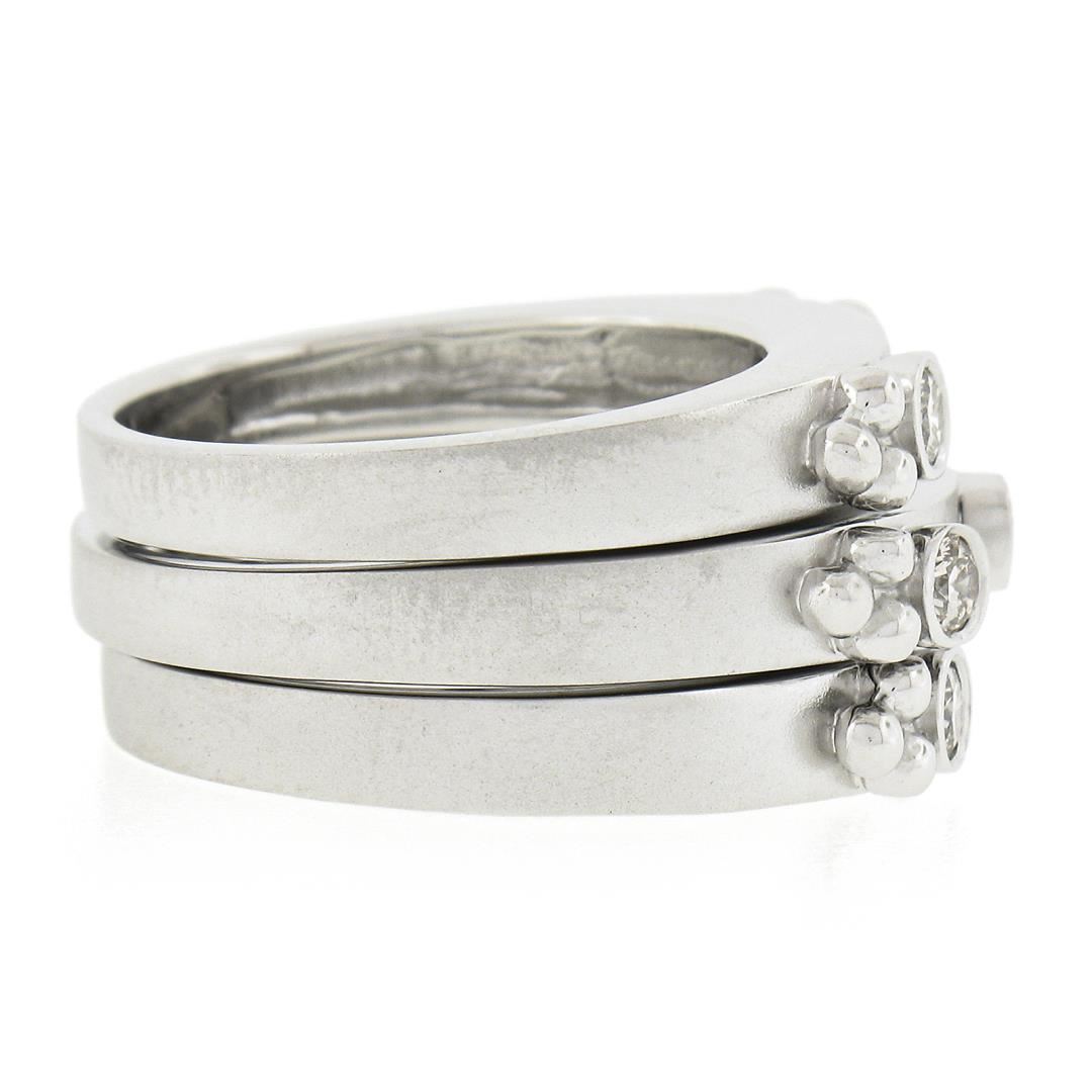 A new solid 14k white gold set of 3 stack band ring, featuring 7 round cut natural diamonds (G-I - VS2/SI1 ; 0.46ctw). The ring is size 6.0, weighs a total of 14.14 grams, and measures 11.2mm wide.
