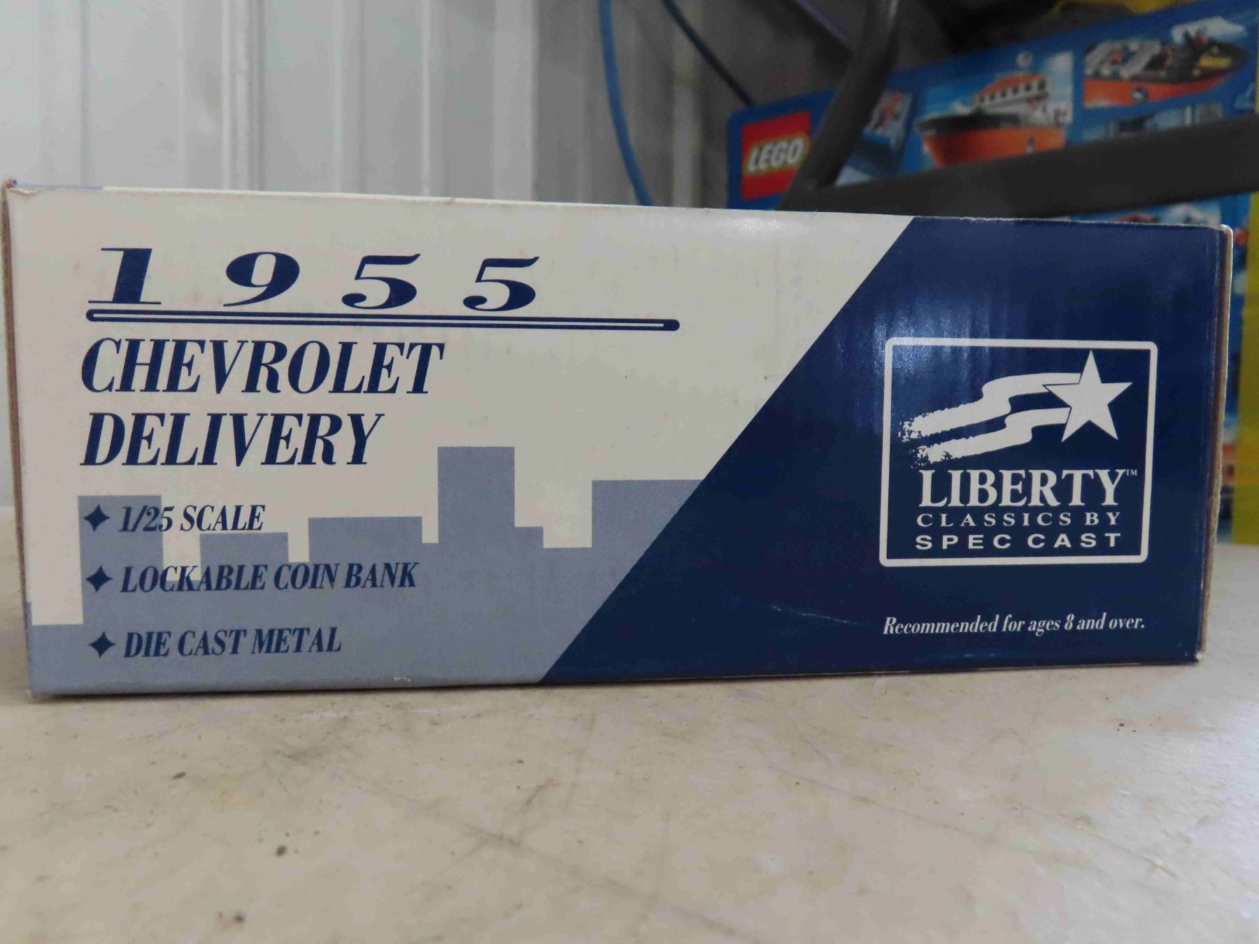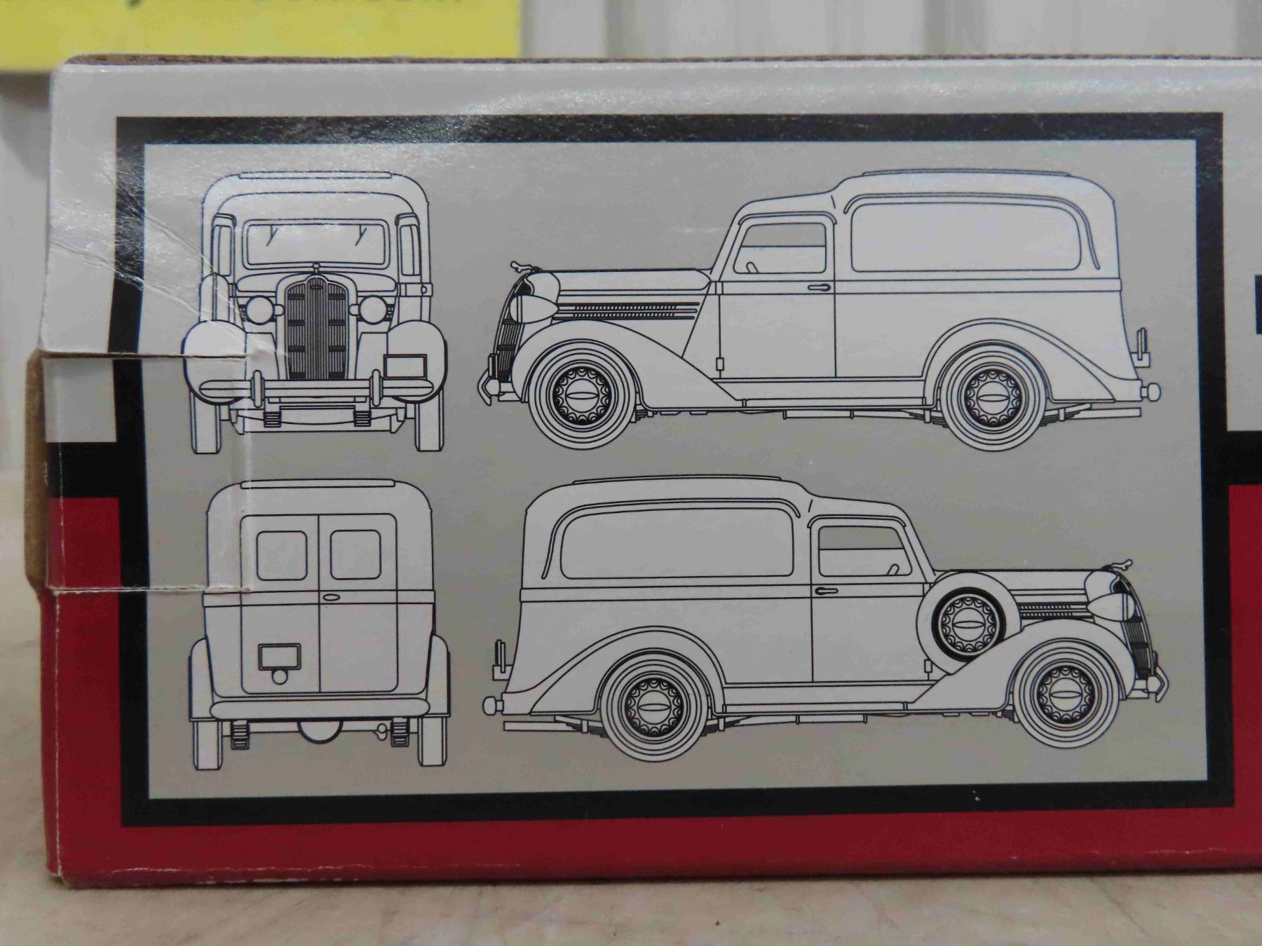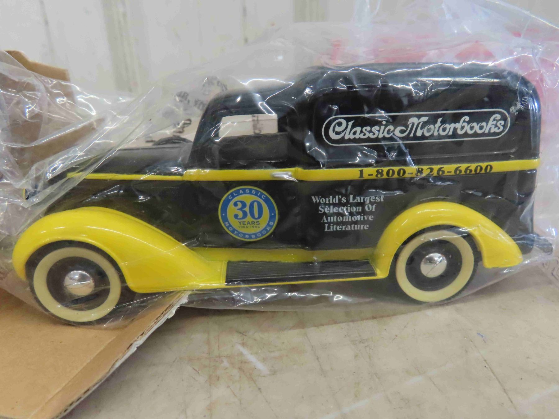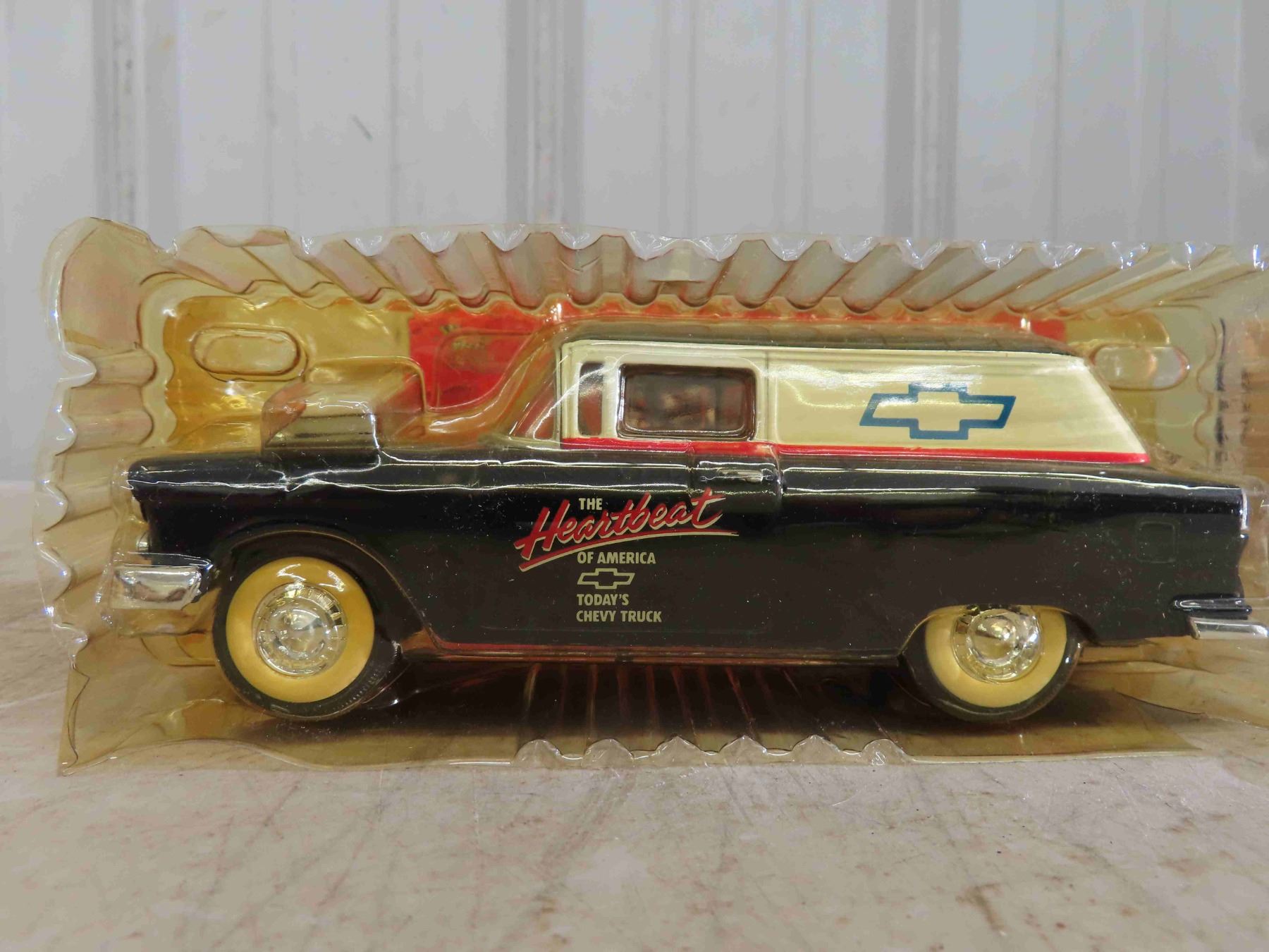 3 New Diecast Metal Lockable Coin Banks : 1936 Dodge Panel Scale 1:28 , 1955 Chevy Delivery Scale 1:25, 1 Other