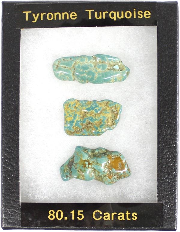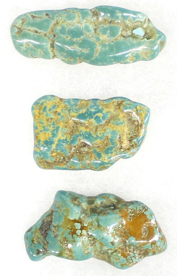 3 New Mexico Tyrone Mine Turquoise Nuggets, 80.15 total carat wt., largest measures .75'' x 1.25''