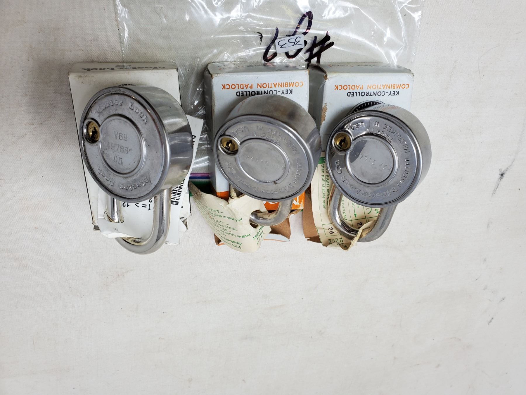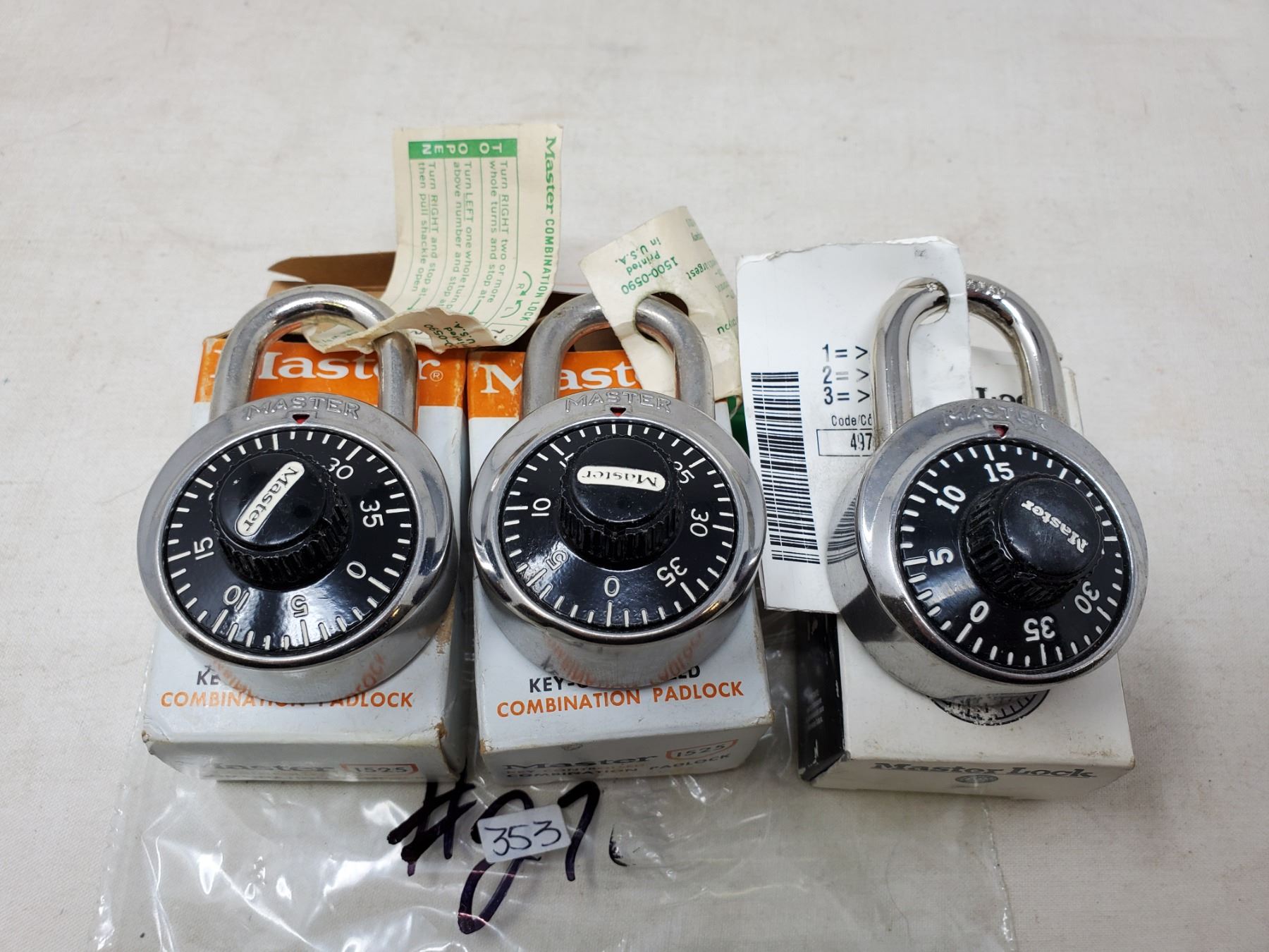 3-New in box old Master combination padlocks c/w combinations,3-padlocks