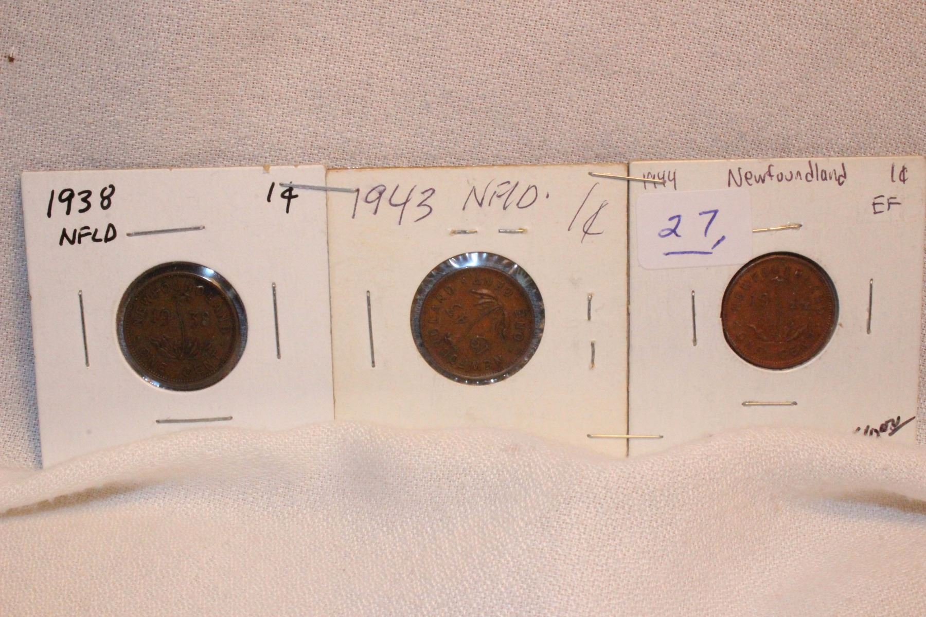 3 Newfoundland Small Cents - 1938, 1943, 1944