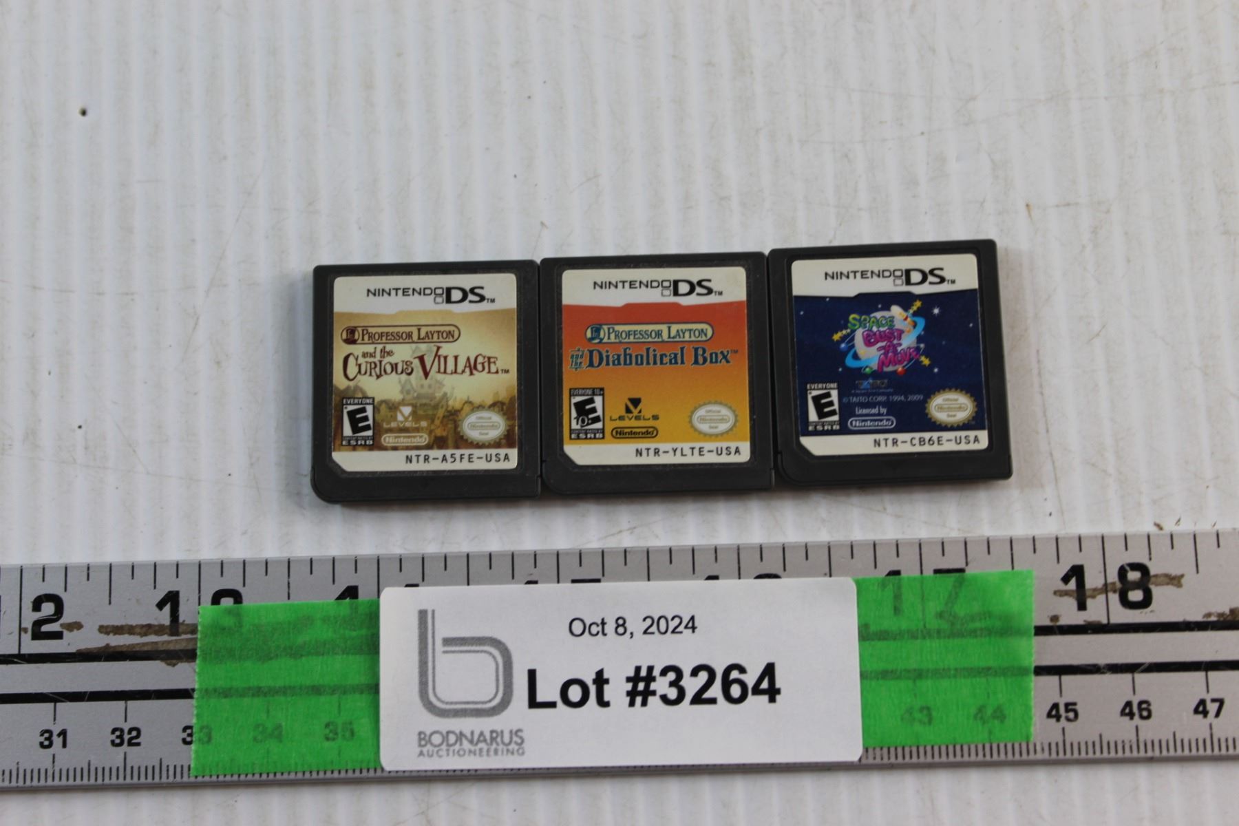 (3) Nintendo DS Cartridges - Professor Layton and the Curious Village, Diabolical Box and Space Bust A Move