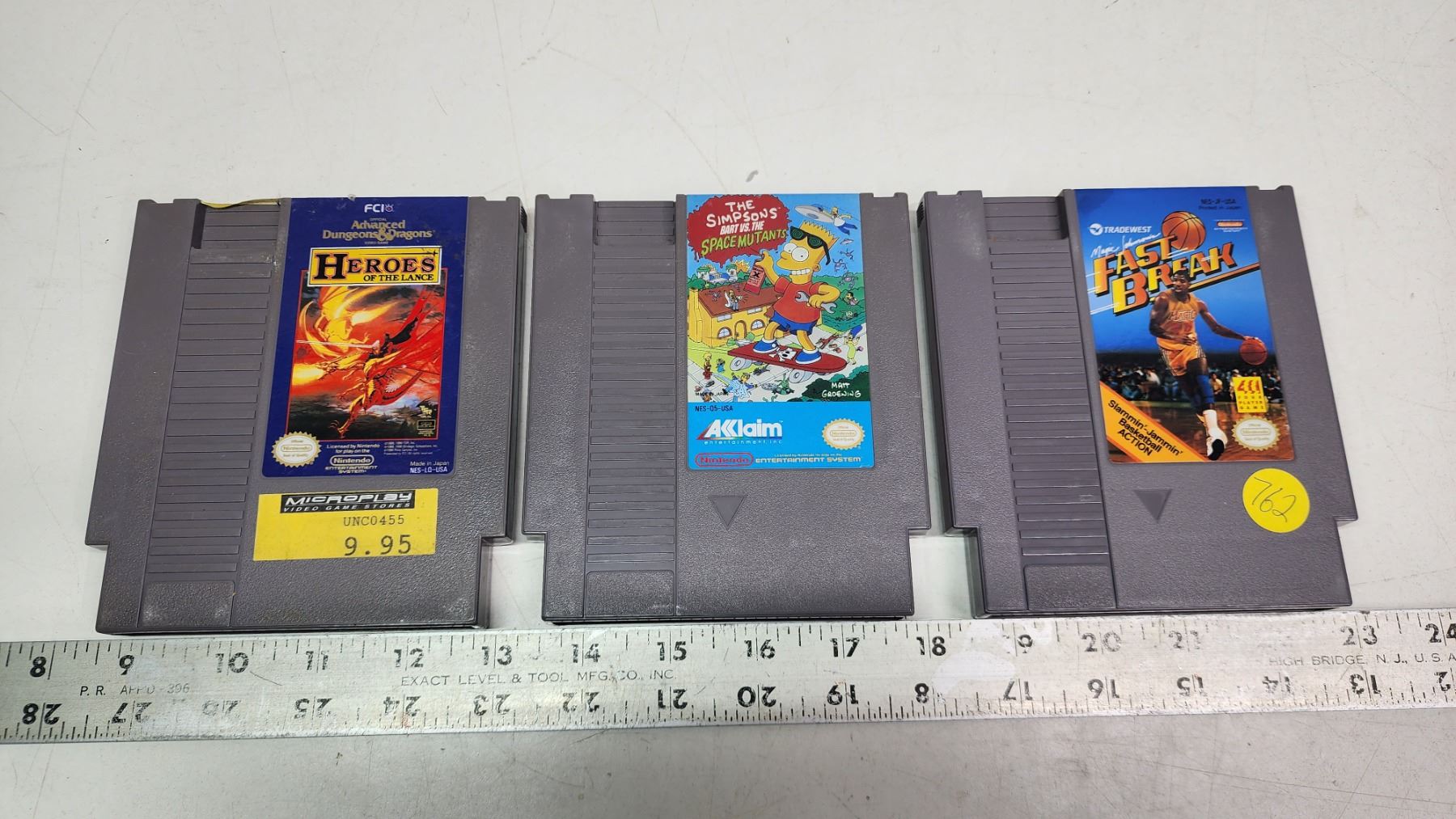 3 Nintendo Entertainment system games - Heroes of the Lance, The Simpson's - Bart and the space mutants, and Fast Break