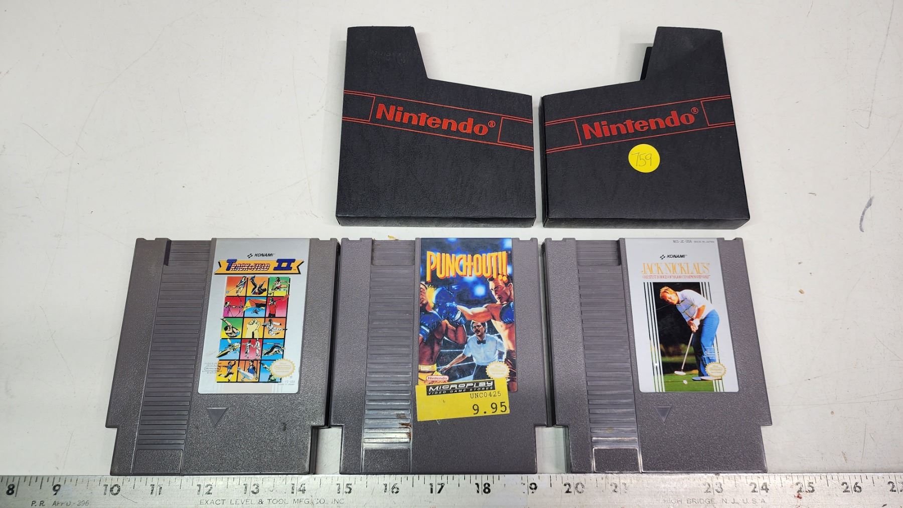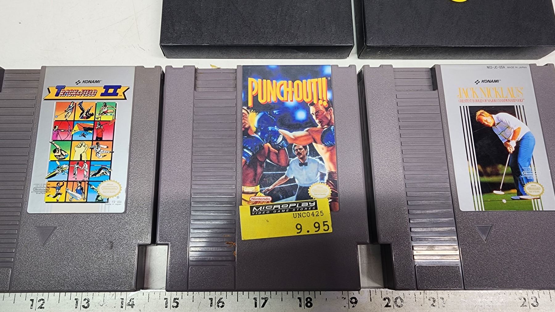 3 Nintendo Entertainment system games - Track and Field II, Jack Nicklaus golf, and Punchout!