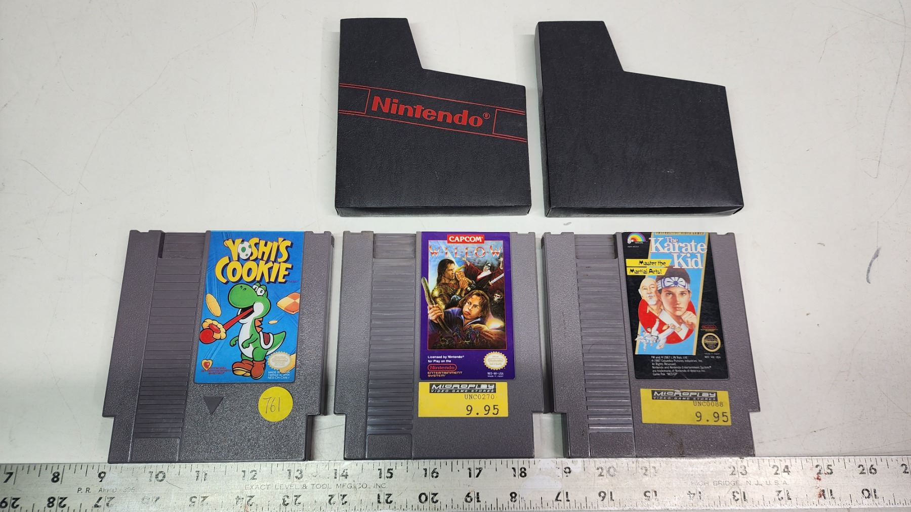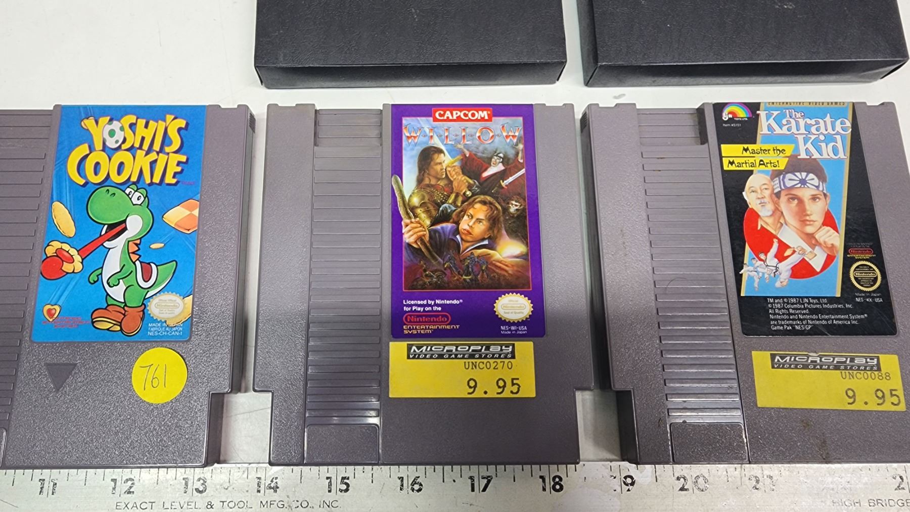 3 Nintendo Entertainment system games - Yoshi's Cookie, The karate kid, and Willow