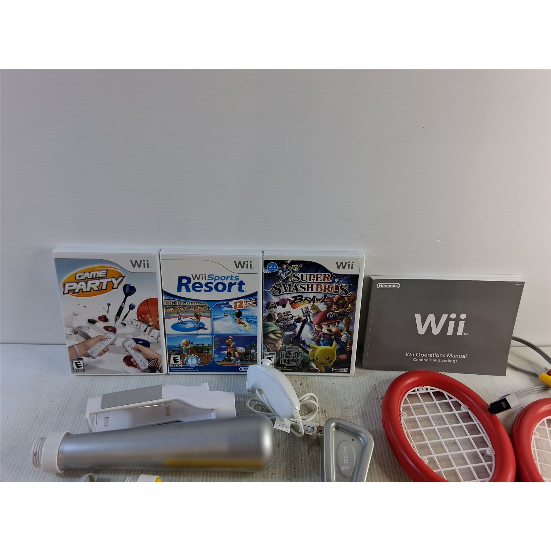 (3) Nintendo Wii Games - Game Party, Sports Resort, Super Smash Bros, Various Wii Controllers