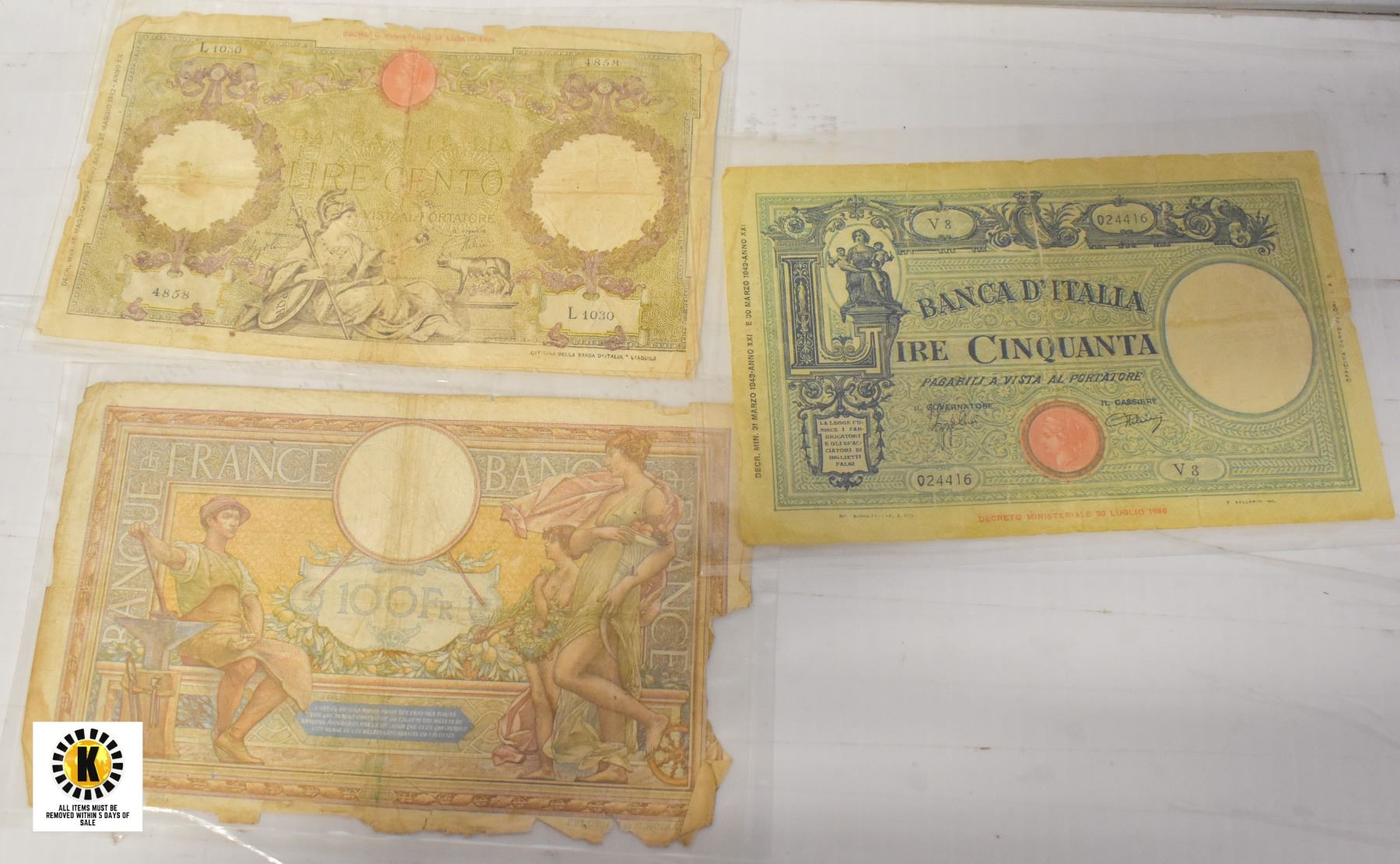3 OLD ITALIAN AND FRANCE BANK NOTES, CIRCULATED