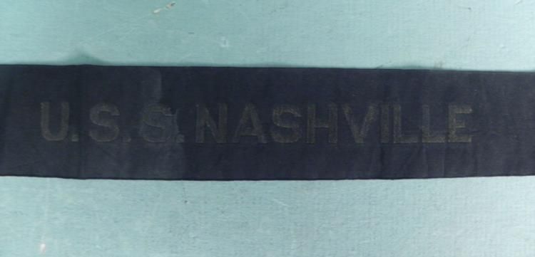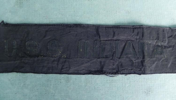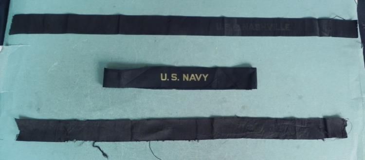 3 OLD US NAVY TALLY CAP RIBBONS-USS INDIANA-USS NASHVILLE-US NAVY GOLD LETTERING FADED ON INDIANA & NASHVILLE-BUT STILL VISIBLE
