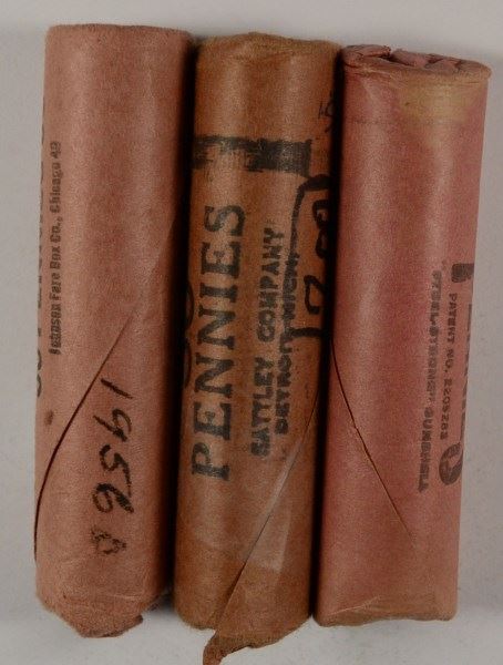 (3) ORGINAL ROLLS OF LINCOLN CENTS (BULLET WRAPED) 1956, 1956-D, 1958