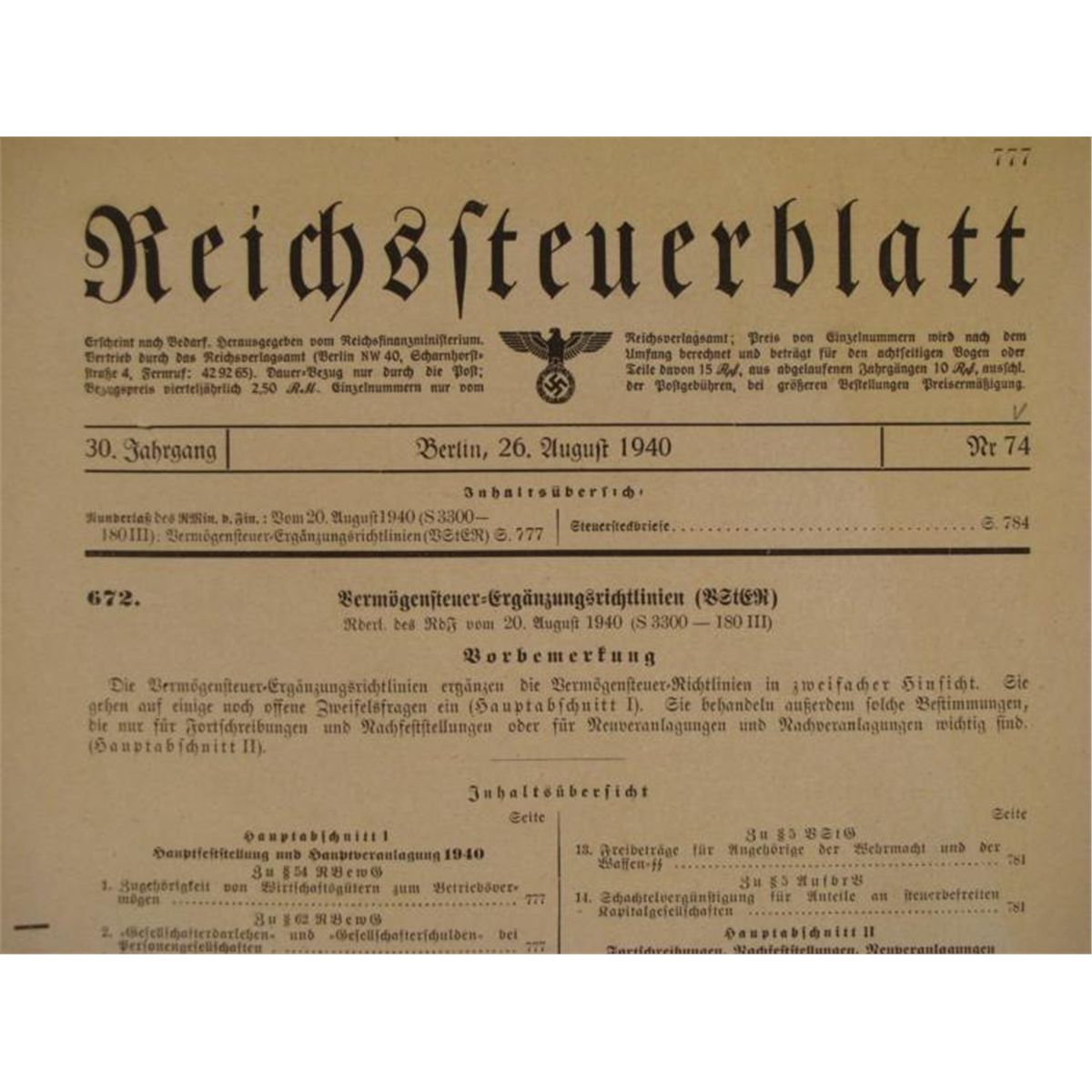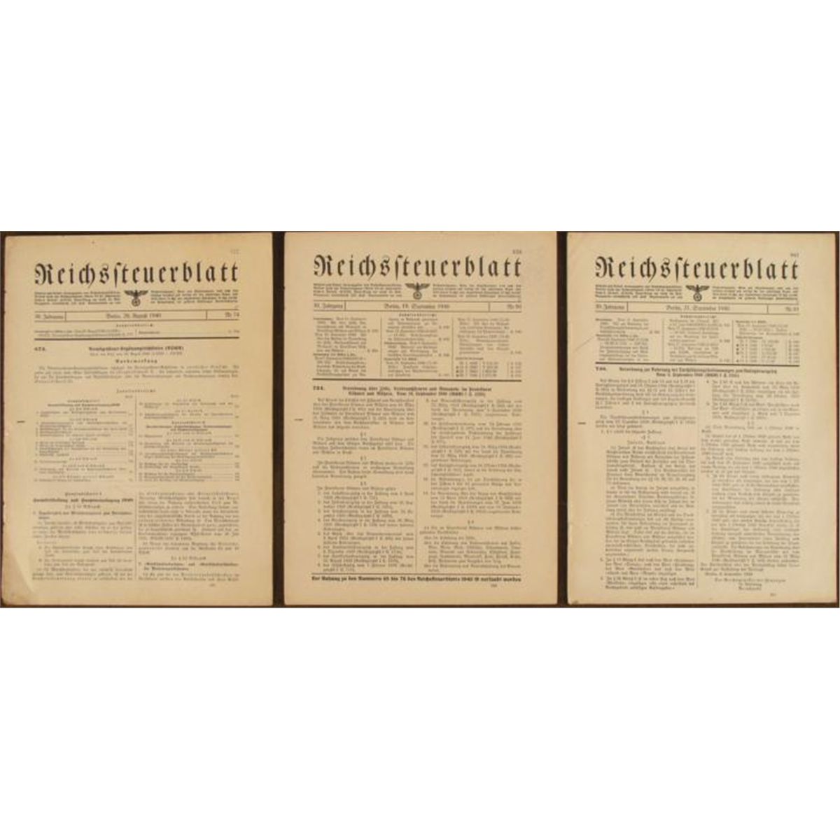 3 ORIGINAL NAZI "REICHSSTEUERBLATT" NEWSPAPERS-IN GERMAN EXTREMIST VIEWS * FROM DATES 9/19/1940--9/21/1940--8/26/1940--ALL RARE--ALL ORIGINAL *
