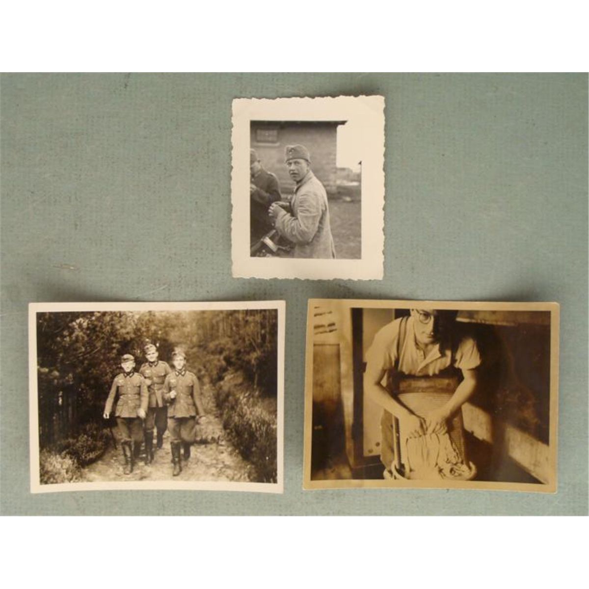 THESE ARE 3 ORIGINAL NAZI WEHRMACHT PHOTOSTHAT WERE CAPTURED DURING SURRENDER. TWO OF THE PHOTOS ARE 2 3/4" X 3 2/4" AND ONE IS 2 1/14" X 2 3/4". *