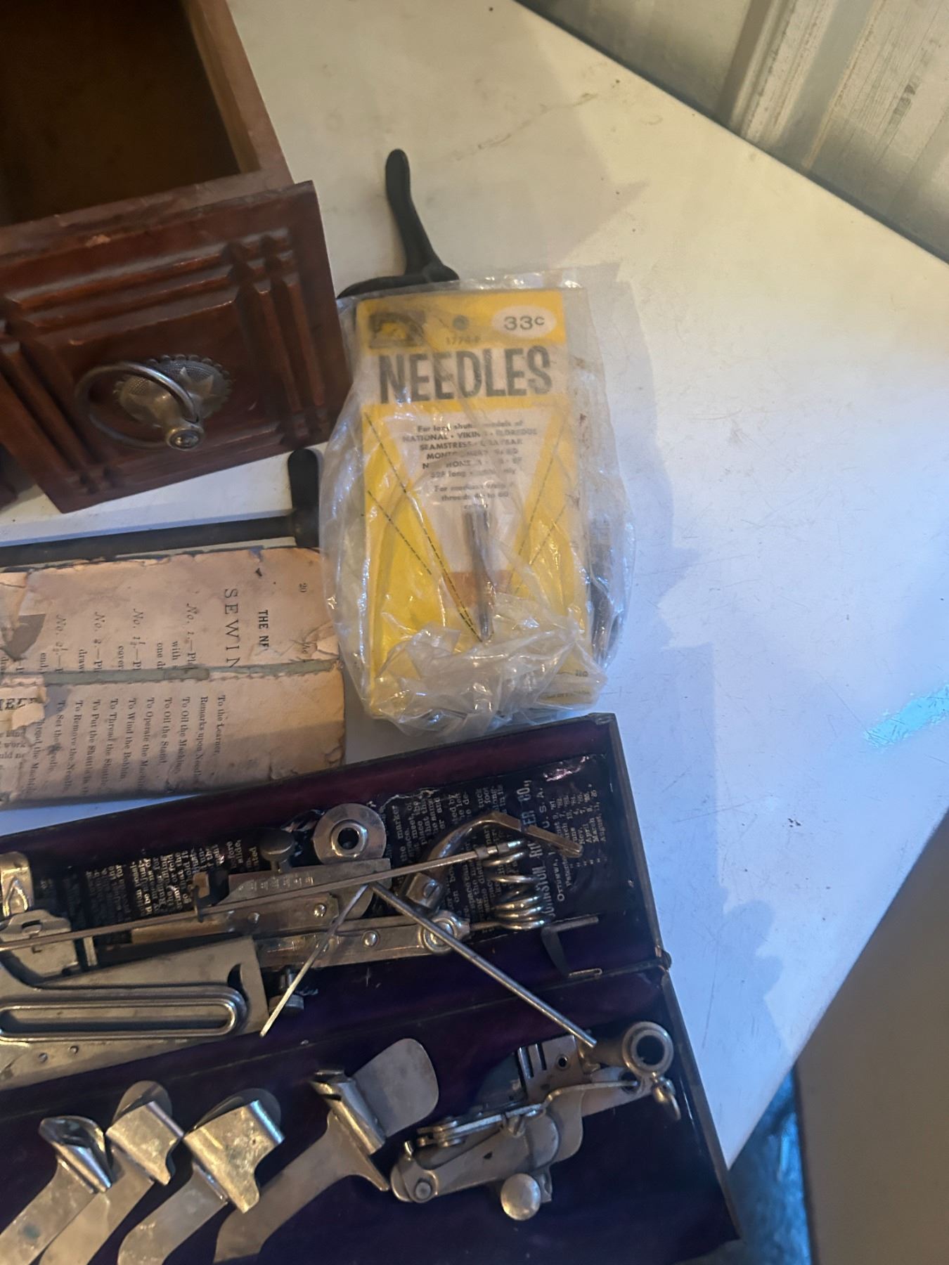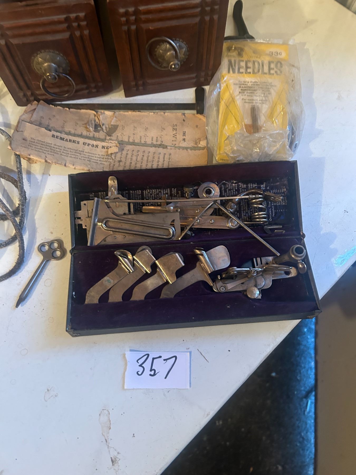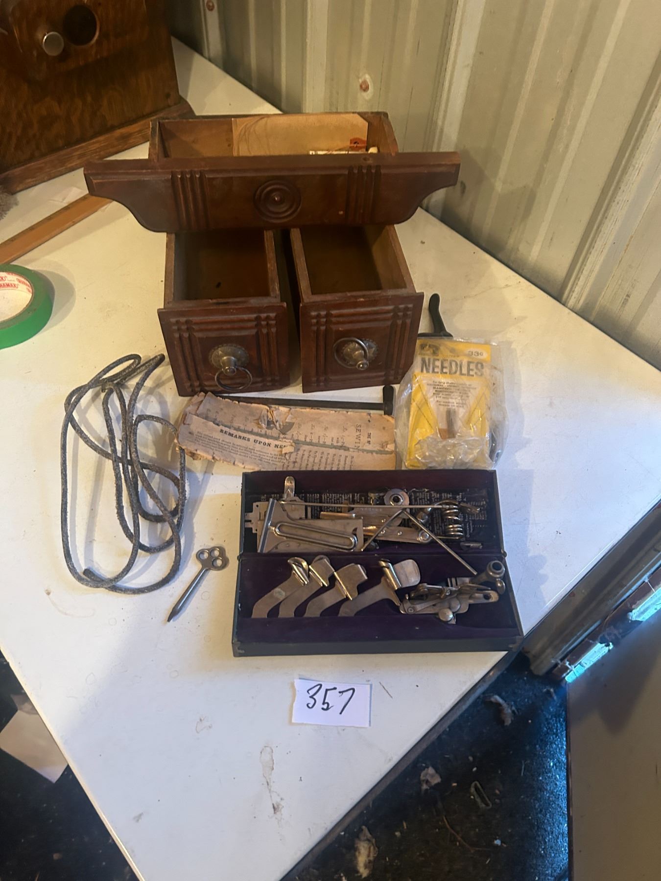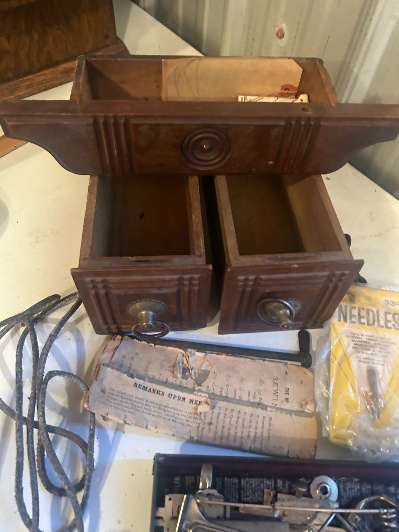 3 Oak Sewing Machine Drawers + accessories