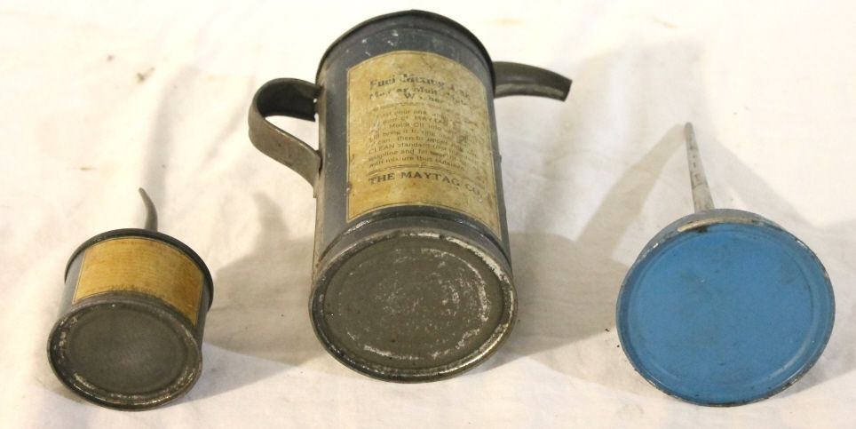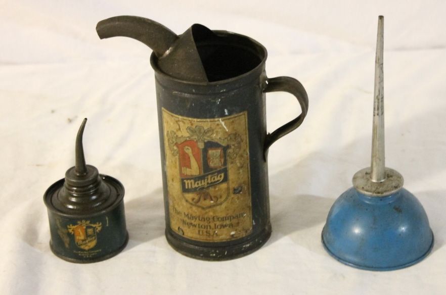 One open with spout. 2 are Maytags from Newton, IA. 4 3/4", 7 1/2", and 8". 3x the money