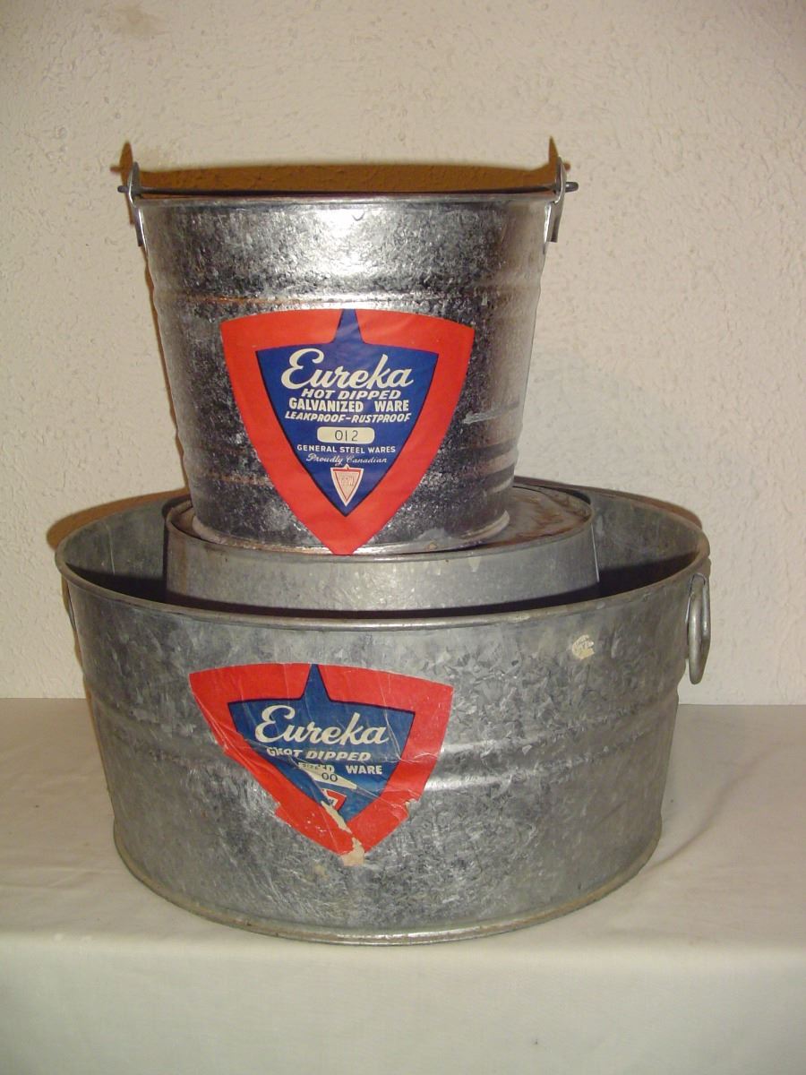 3 Old Galvanized Tubs And Pails