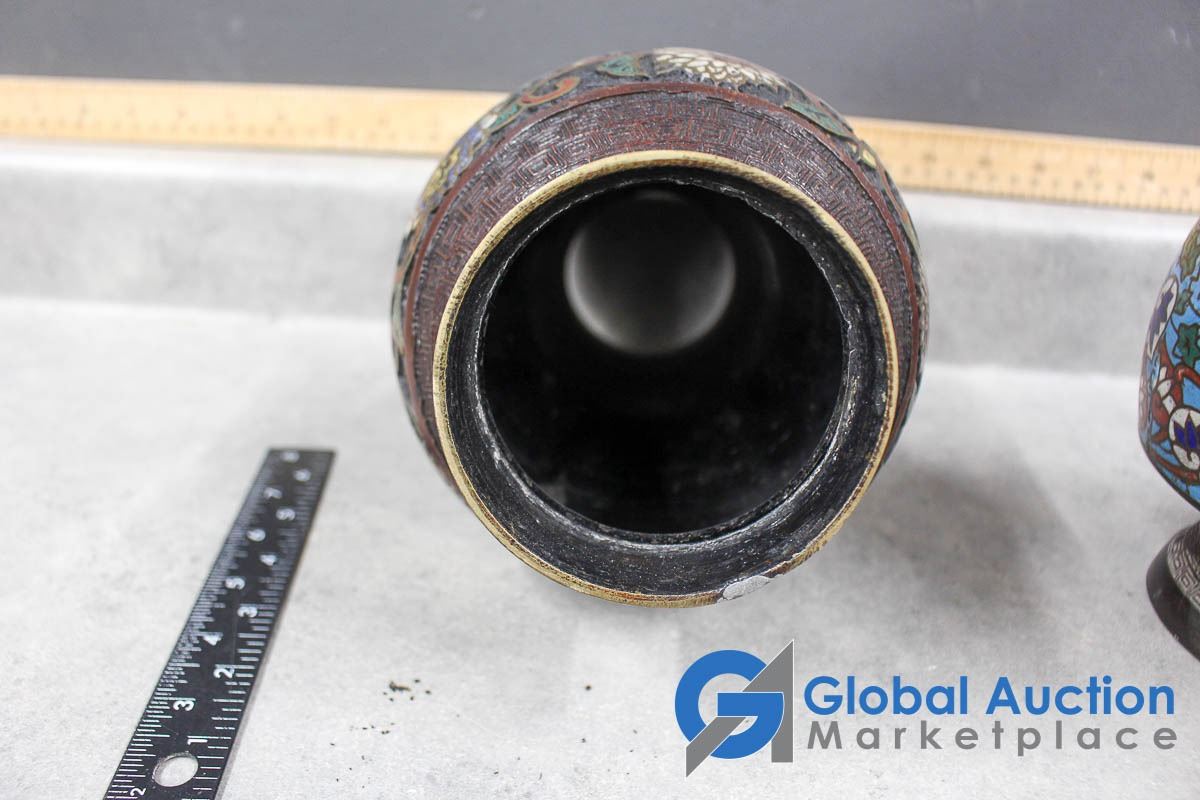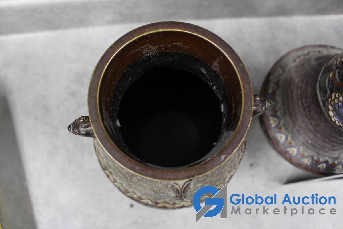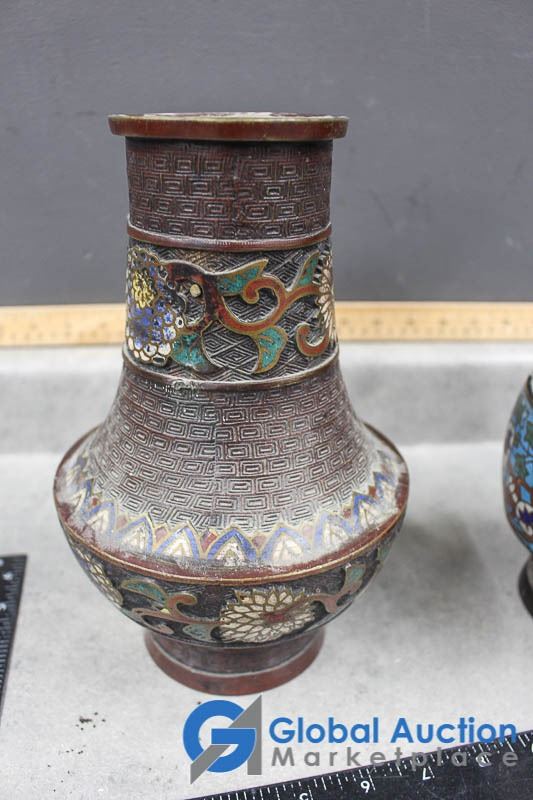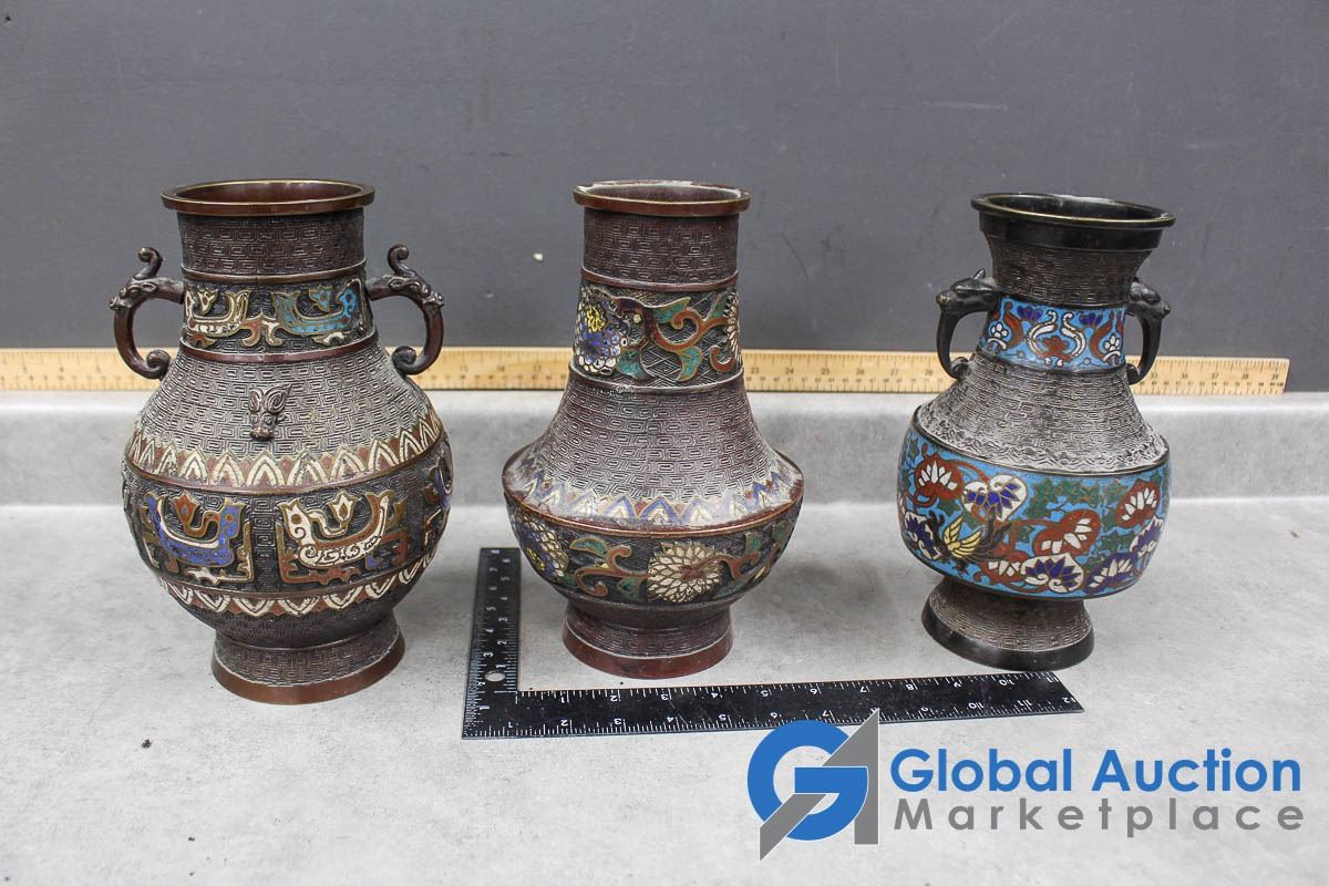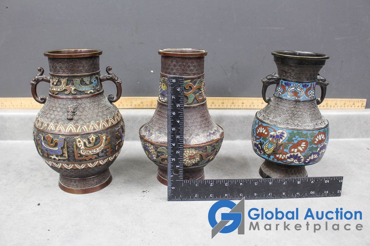 (3) Ornate Metal Vases