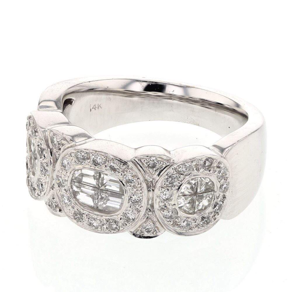 3 Oval Shapes w/ Invisible & Prong-set Diamond Band in 14K White Gold | 253404 6.5 Grams, featuring 0.4 Baguette ct 36 0.35 Princess ct 4 0.33 ct 8 14 ct