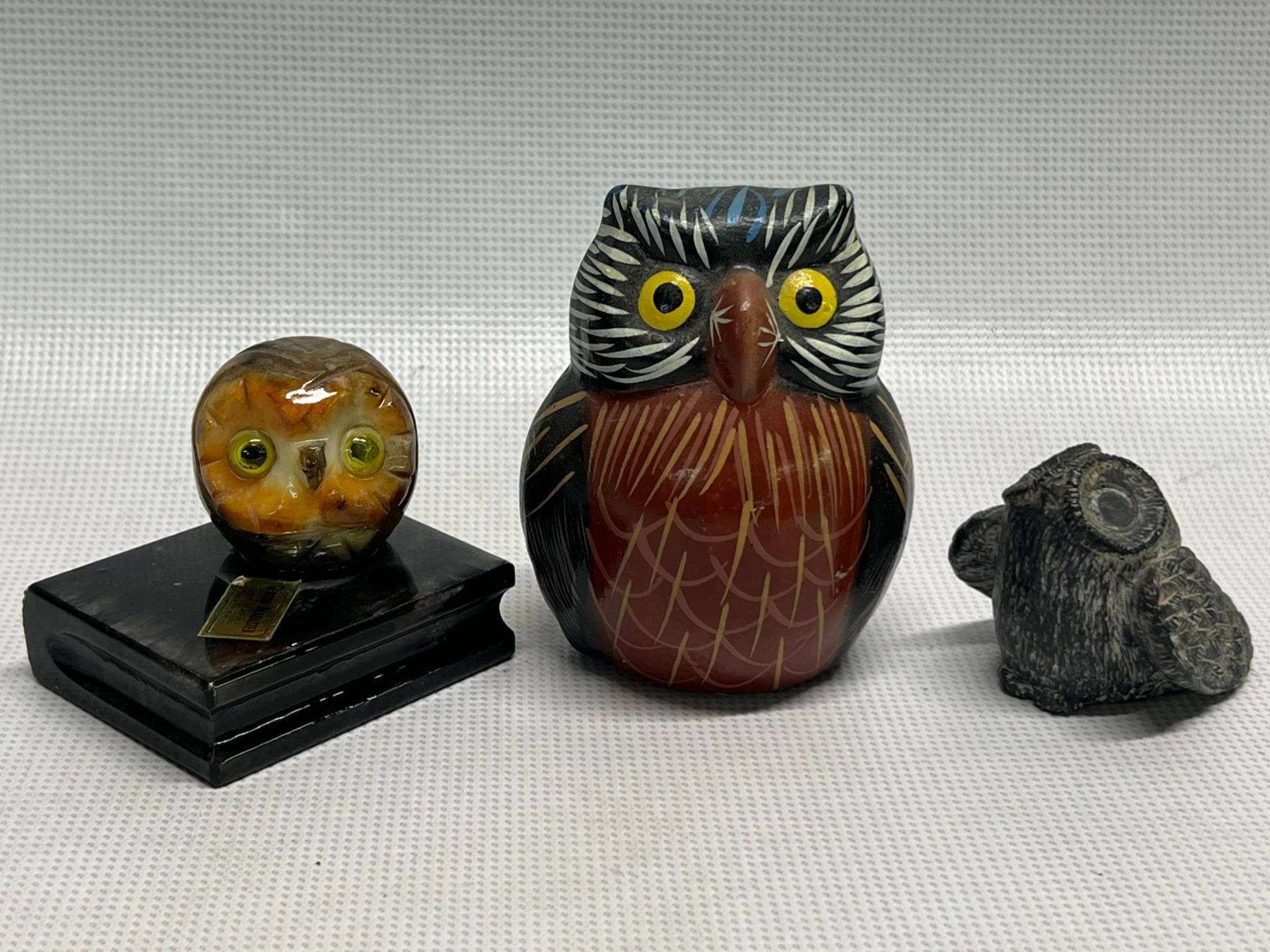 3 Owl Figures Décor Pieces Alabaster / Ceramic (tallest about 3.5x3")