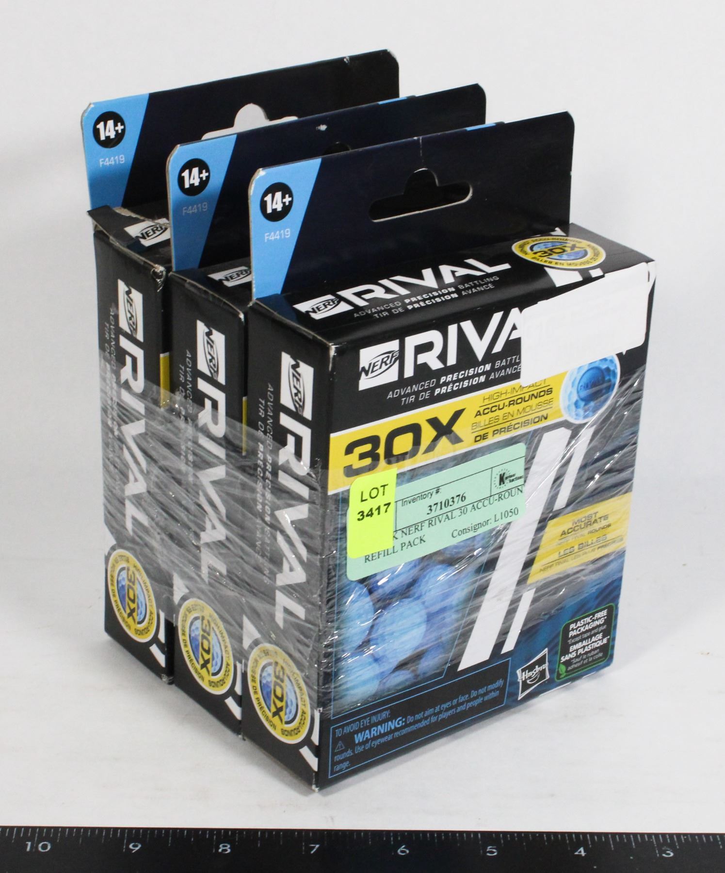 THE PACK CONTAINS 30 HIGH-IMPACT ACCU-ROUNDS DESIGNED FOR USE WITH NERF RIVAL BLASTERS.