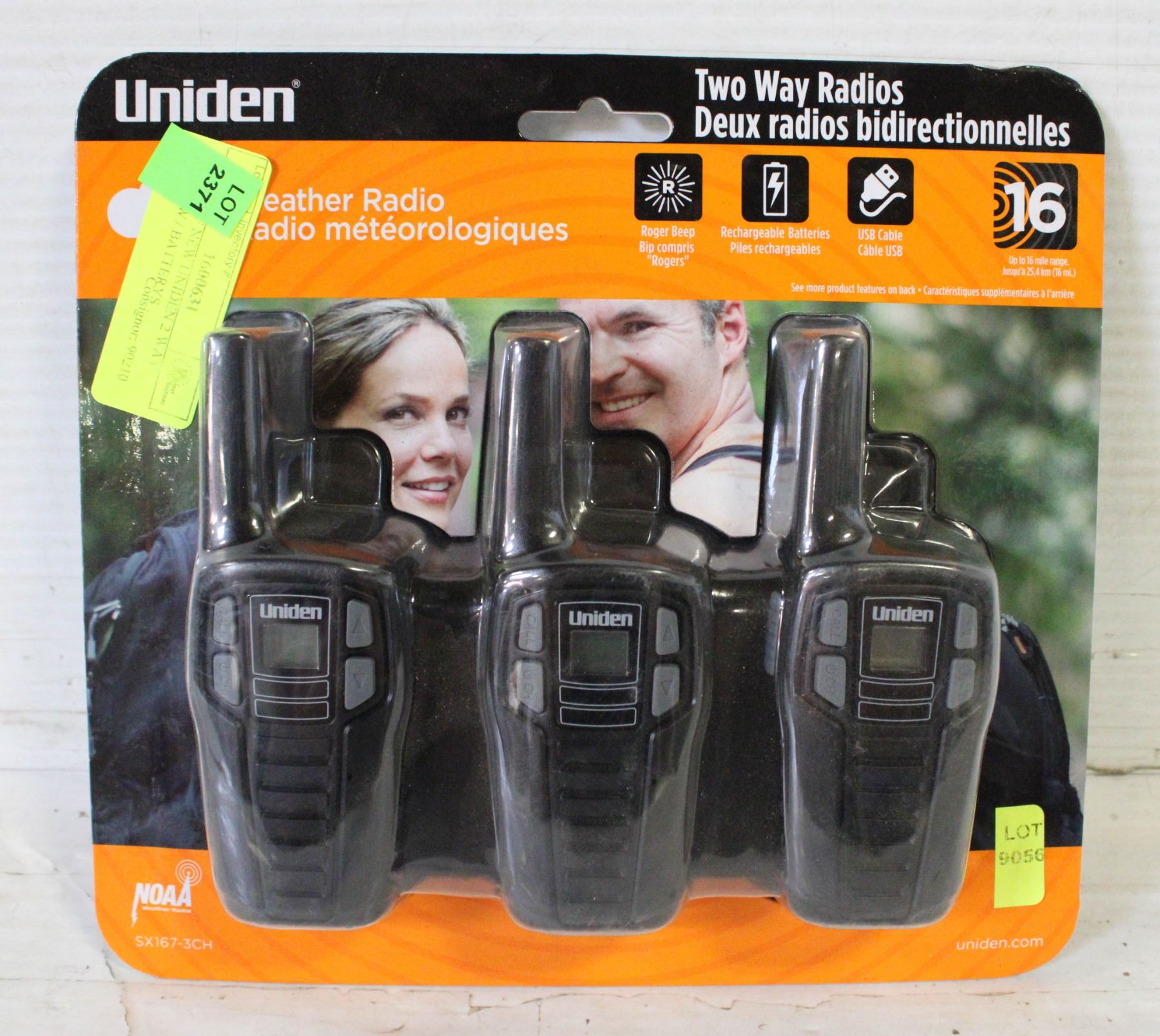 3 PACK OF NEW UNIDEN 2 WAY RADIOS W / BATTERYS