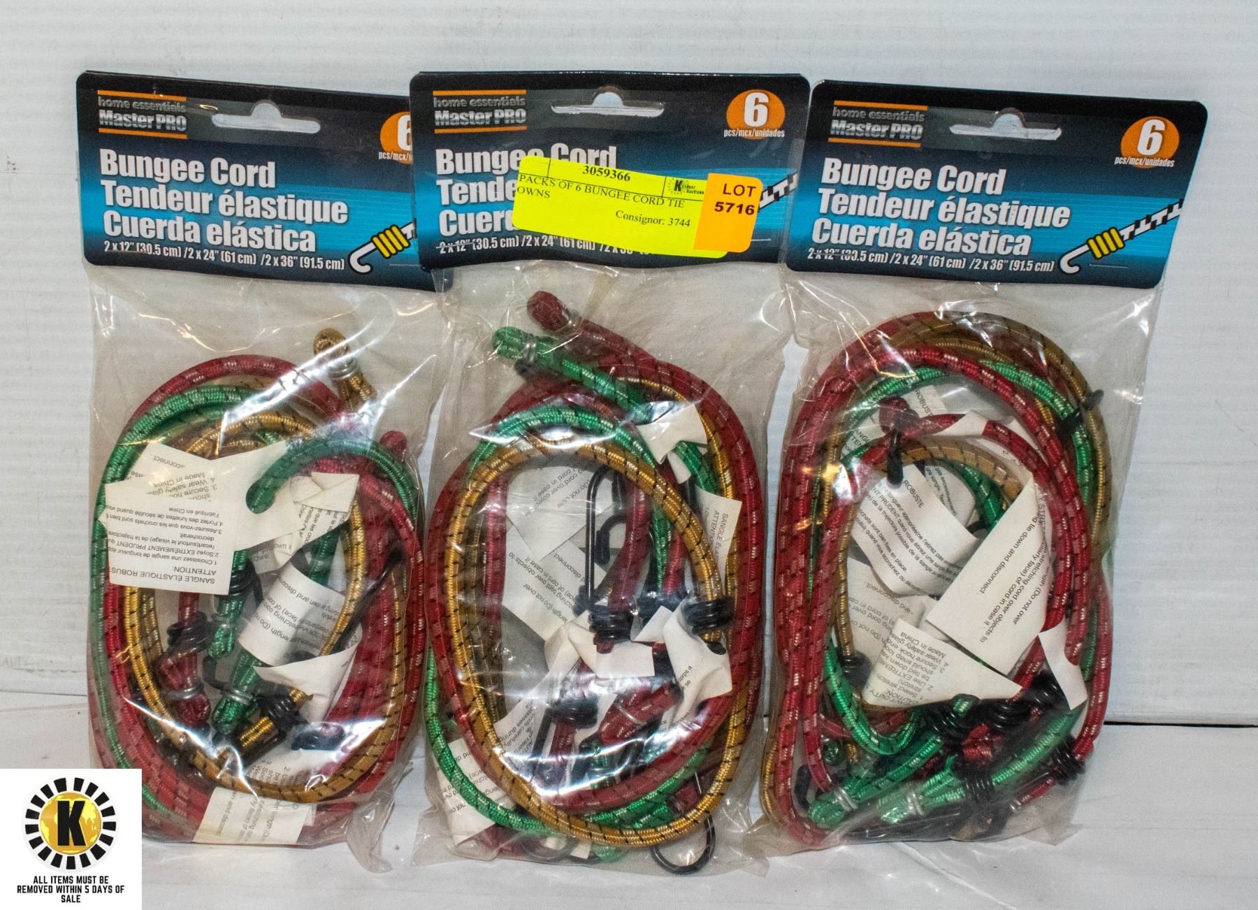 3 PACKS OF 6 BUNGEE CORD TIE DOWNS