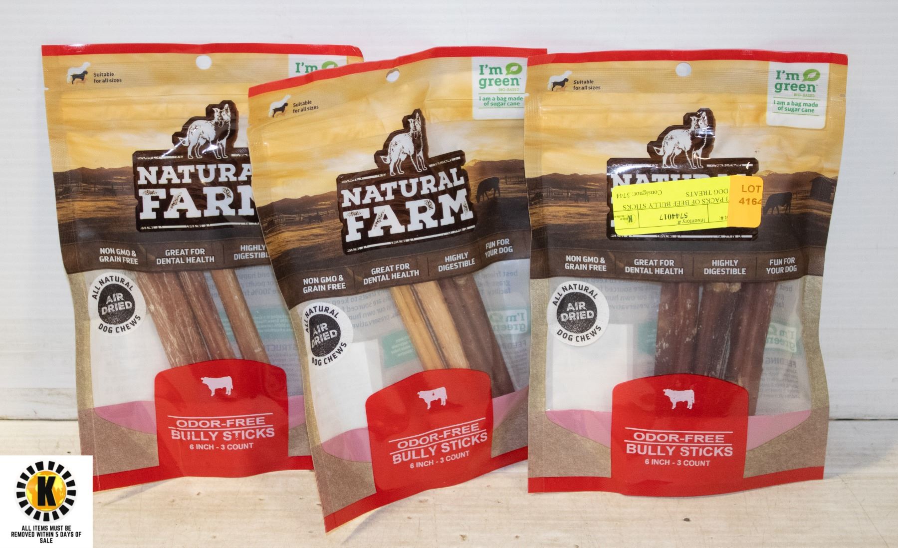 3 PACKS OF BEEF BULLY STICKS DOG TREATS