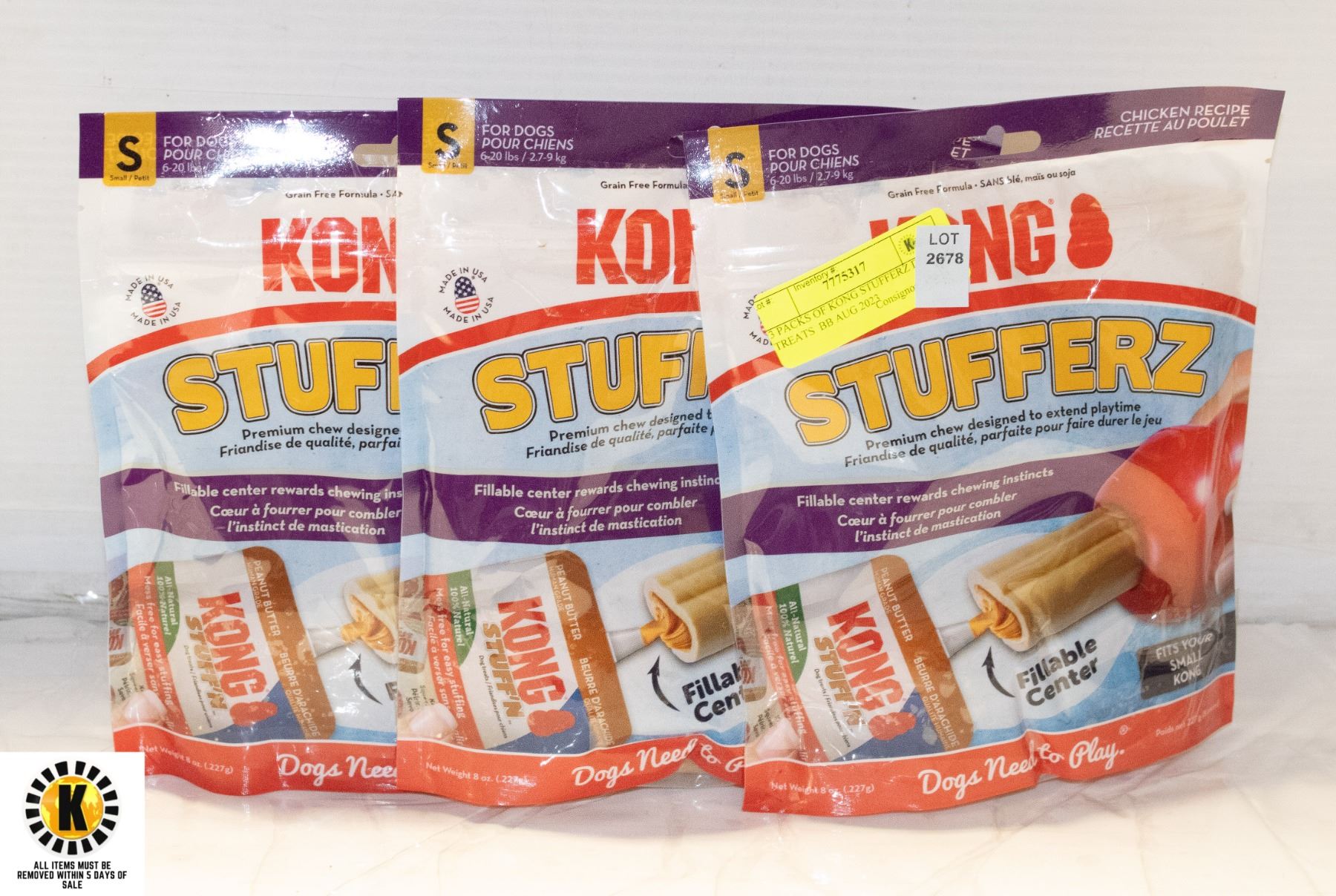 3 PACKS OF KONG STUFFERZ DOG TREATS BB AUG 2023