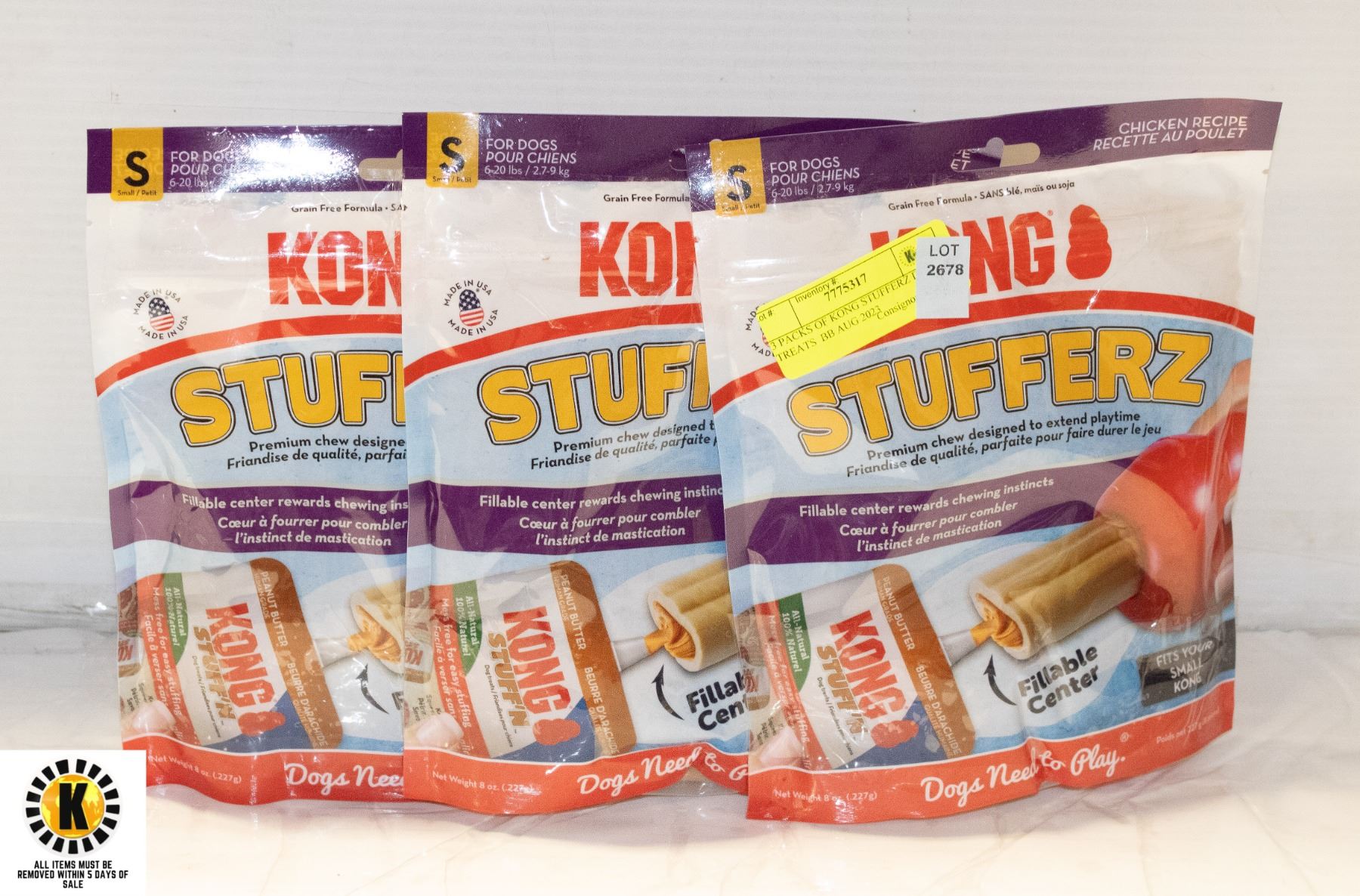 3 PACKS OF KONG STUFFERZ DOG TREATS BB AUG 2023