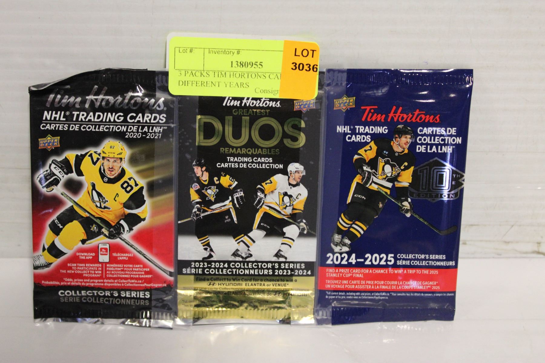 3 PACKS TIM HORTONS CARDS 3 DIFFERENT YEARS