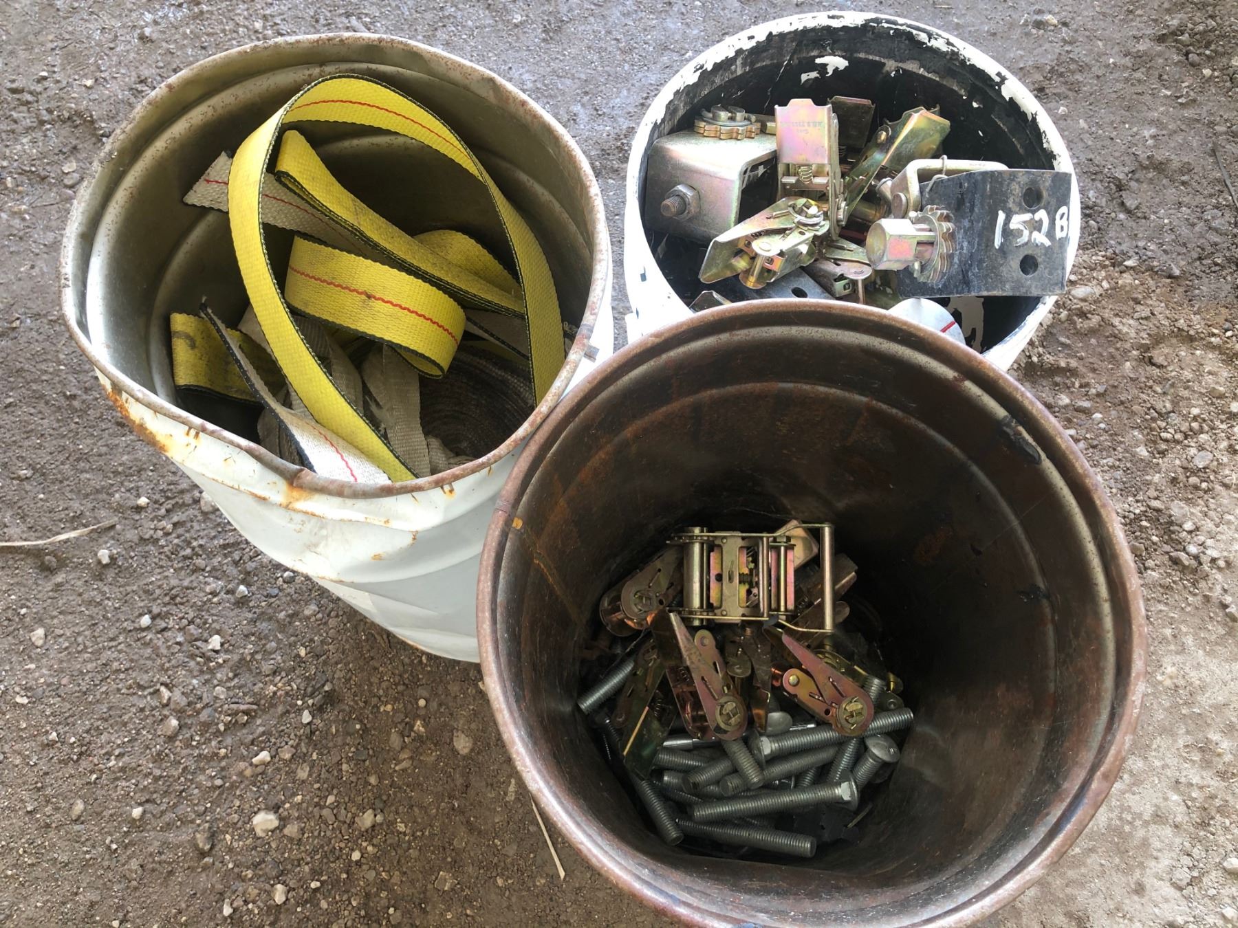 3 PAILS OF STRAP RATCHETS, STRAPS