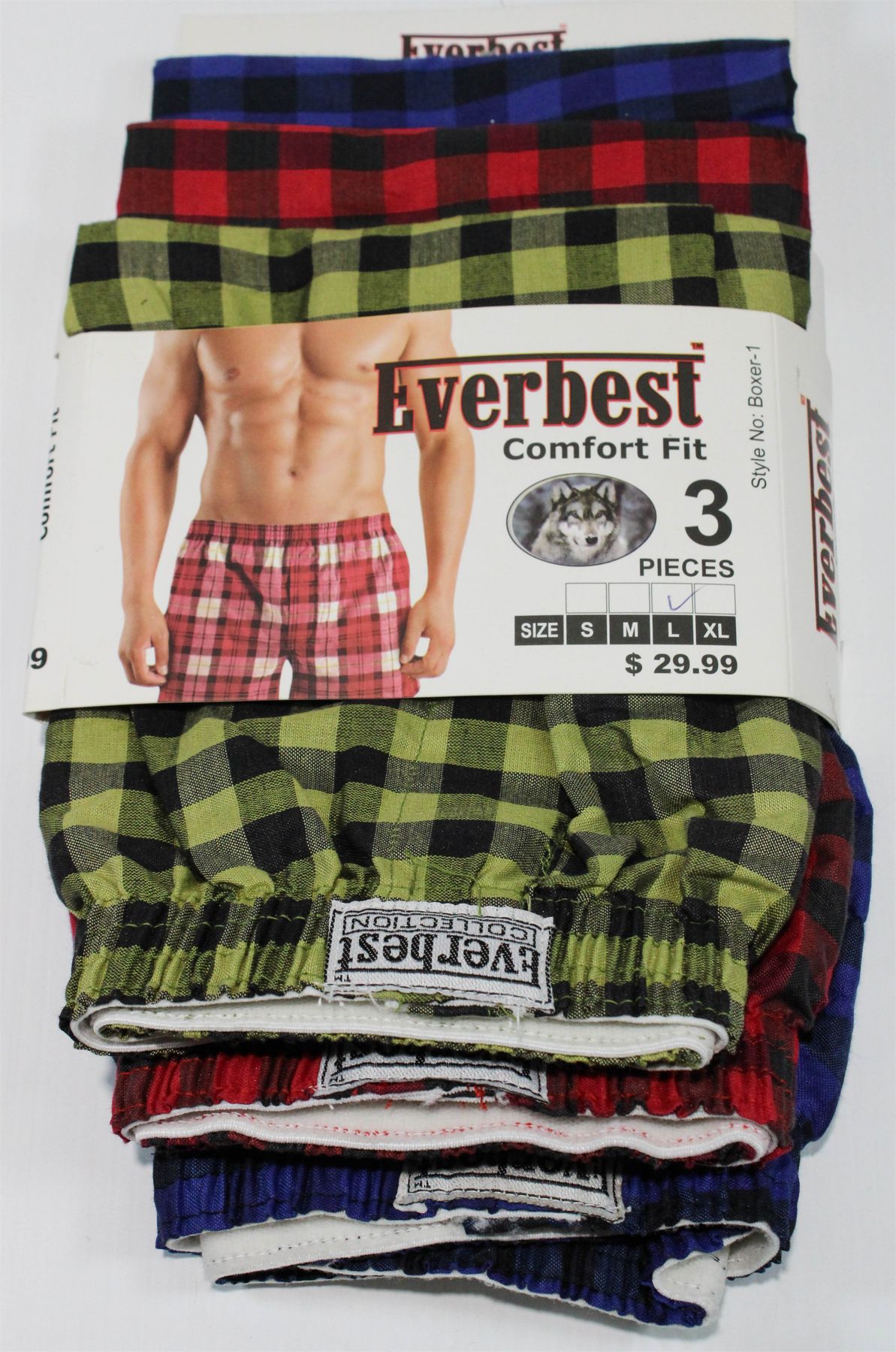 3 PAIRS EVERBEST PLAID BOXERS, SIZE L