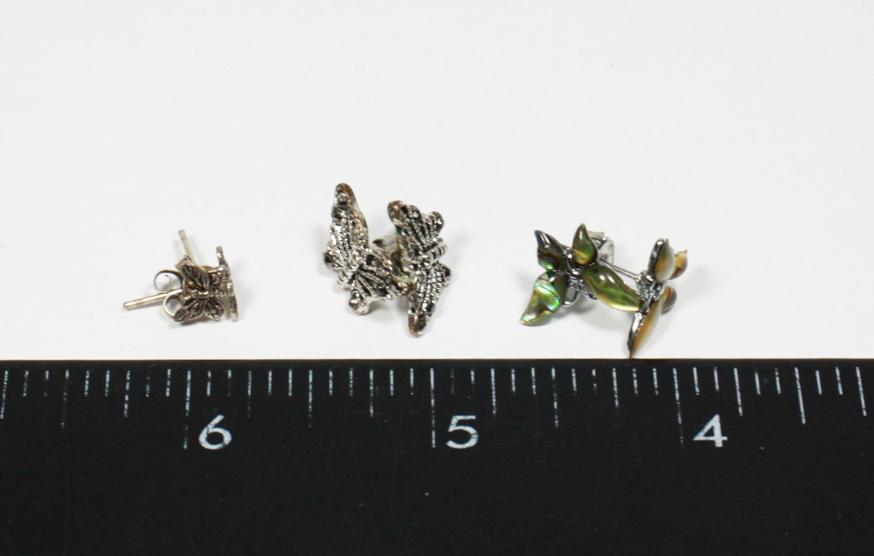 3 PAIRS OF BUTTERFLY DESIGN STUD EARRINGS