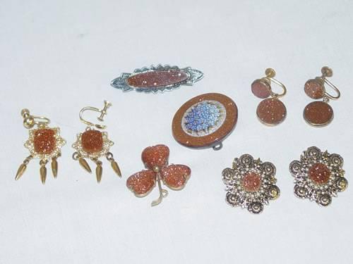 (3) PAIRS OF GOLDSTONE EARRINGS and (3) GOLDSTONE PINS;