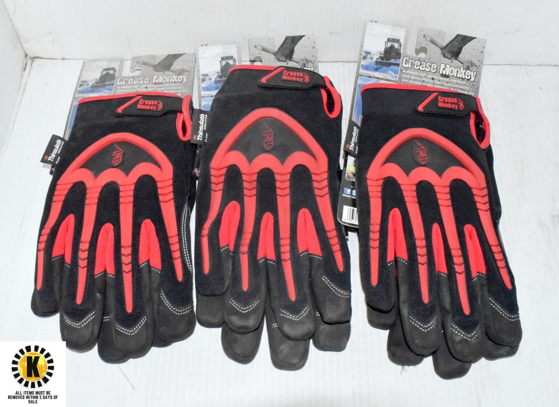 3 PAIRS OF GREASE MONKEY WORK GLOVES