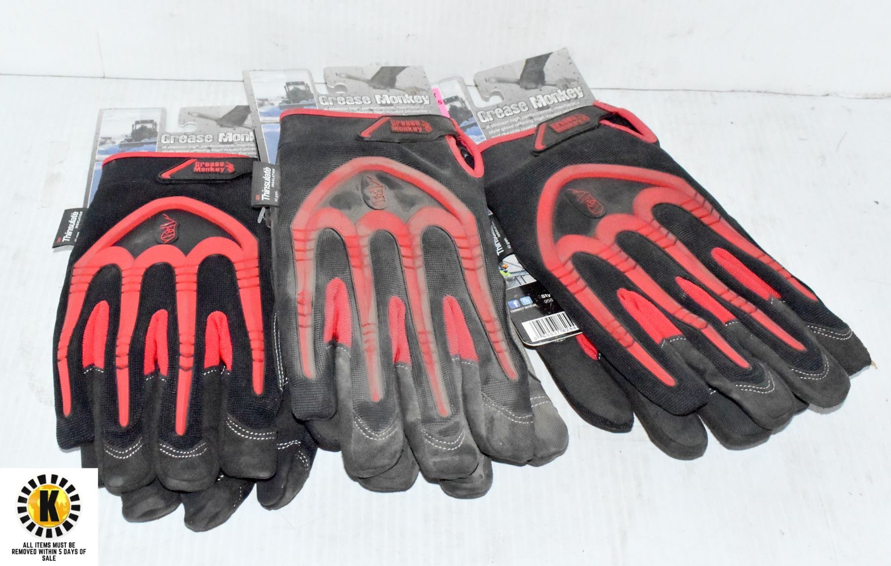 3 PAIRS OF RED GREASE MONKEY WORK GLOVES